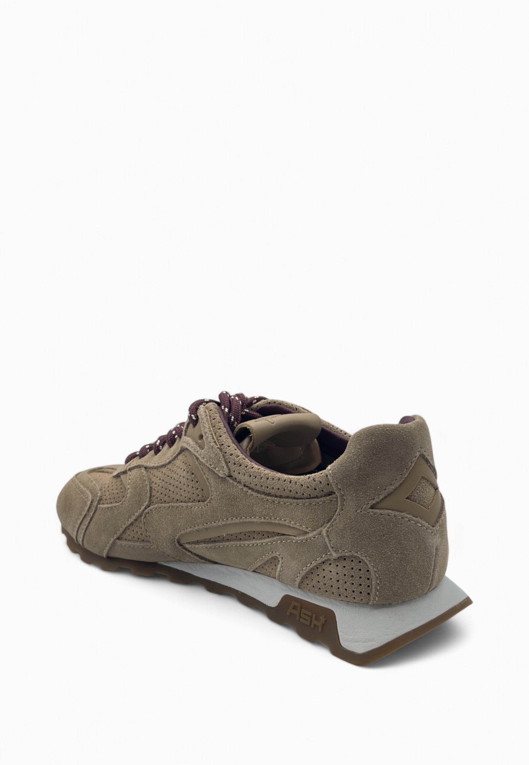 • SNEAKERS SCAMOSCIATA, SUOLA BASSA IN CONTRASTO ,STRINGHE TUBOLARI COLORE BORDEAUX
