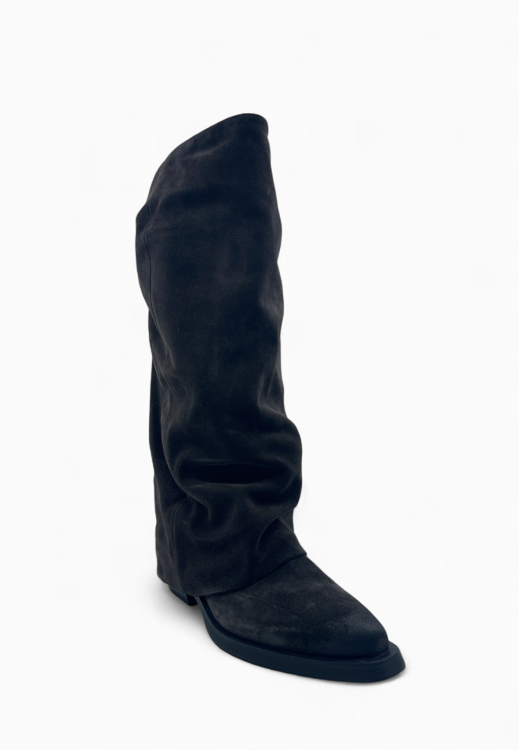 • STIVALE TEXANO SCAMOSCIATO, MODELLO TUBOLARE SENZA CERNIERA CON RISVOLTO