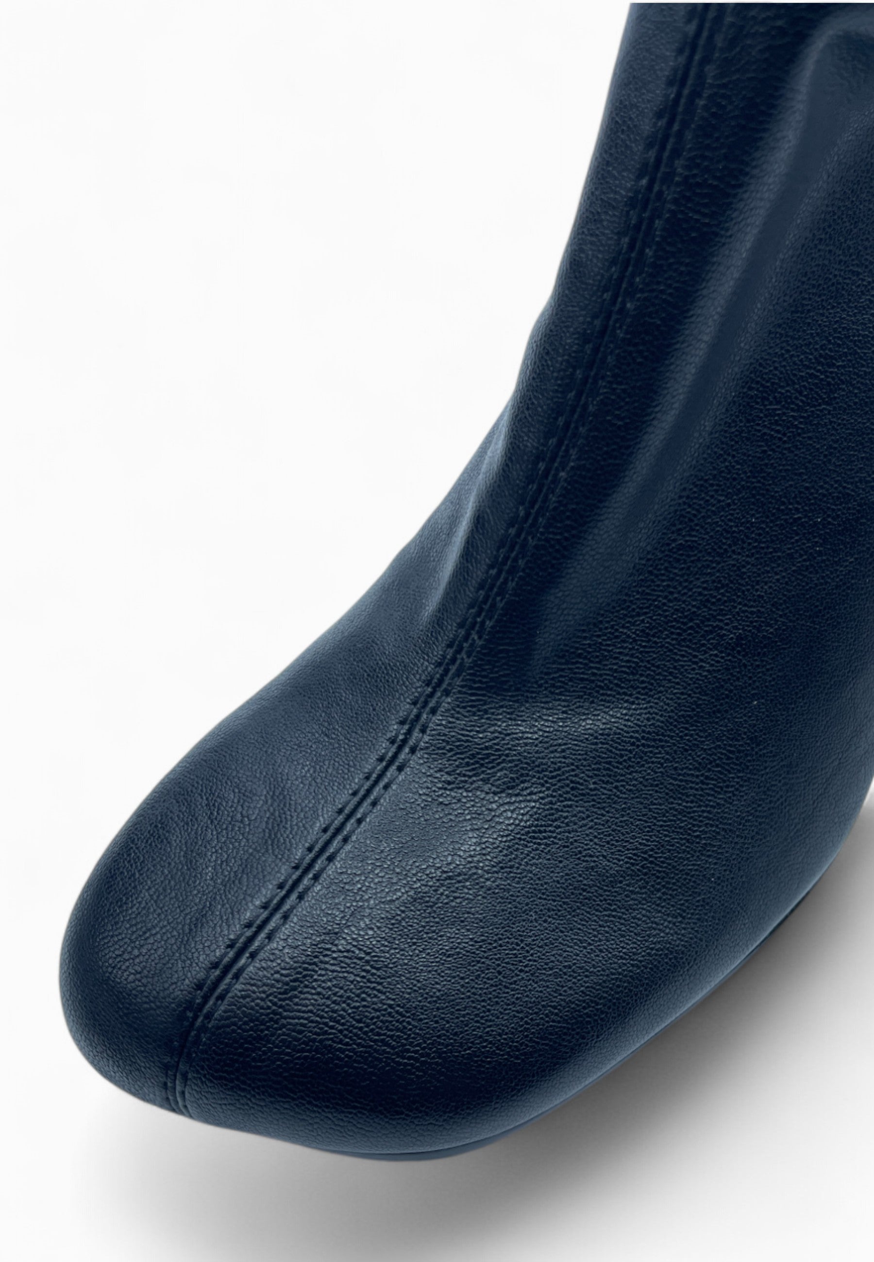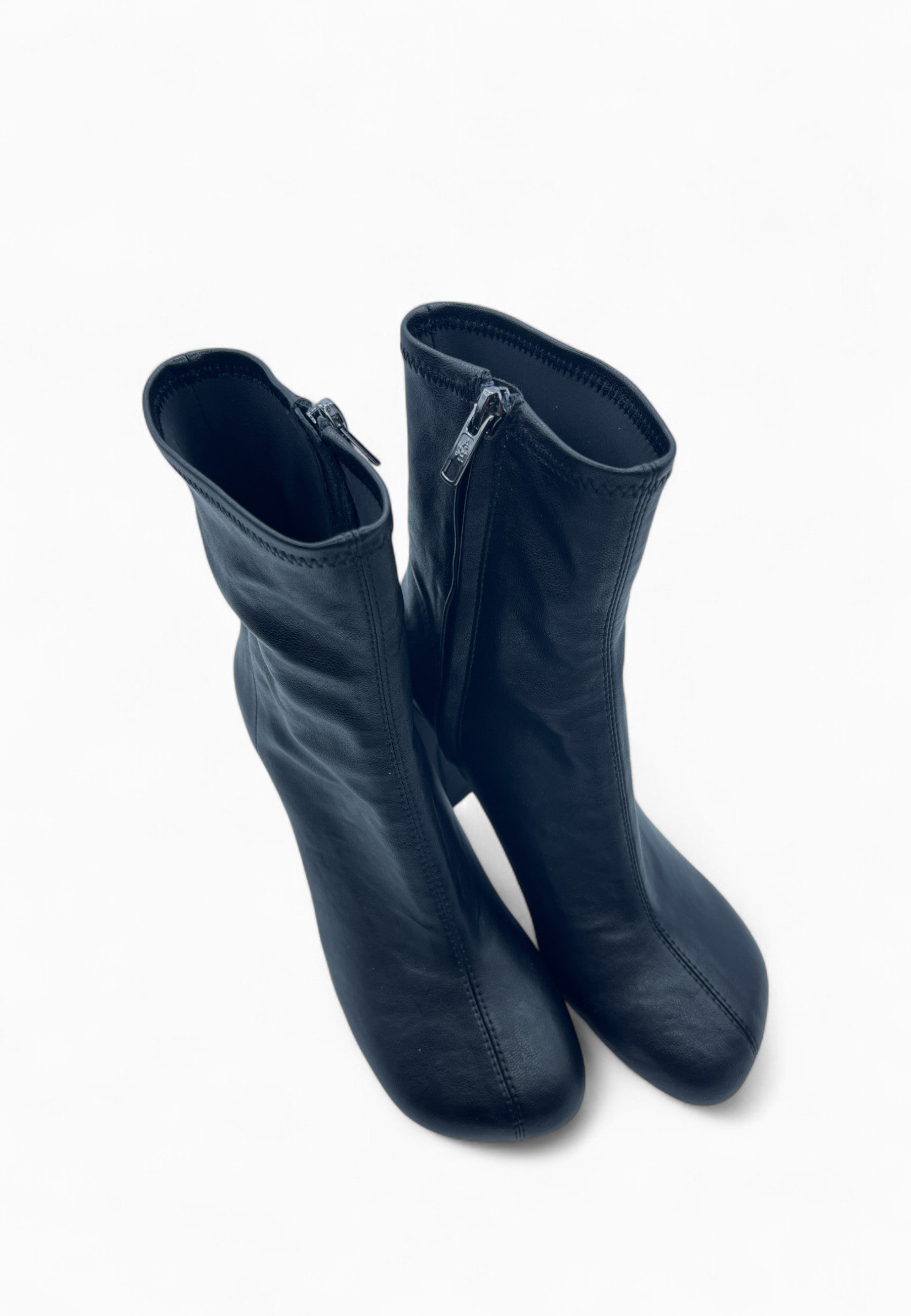 • STIVALETTO IN NAPPA,TACCO LARGO,CERNIERA LATERALE,MUNTA SEMI TONDA OBLIQUA