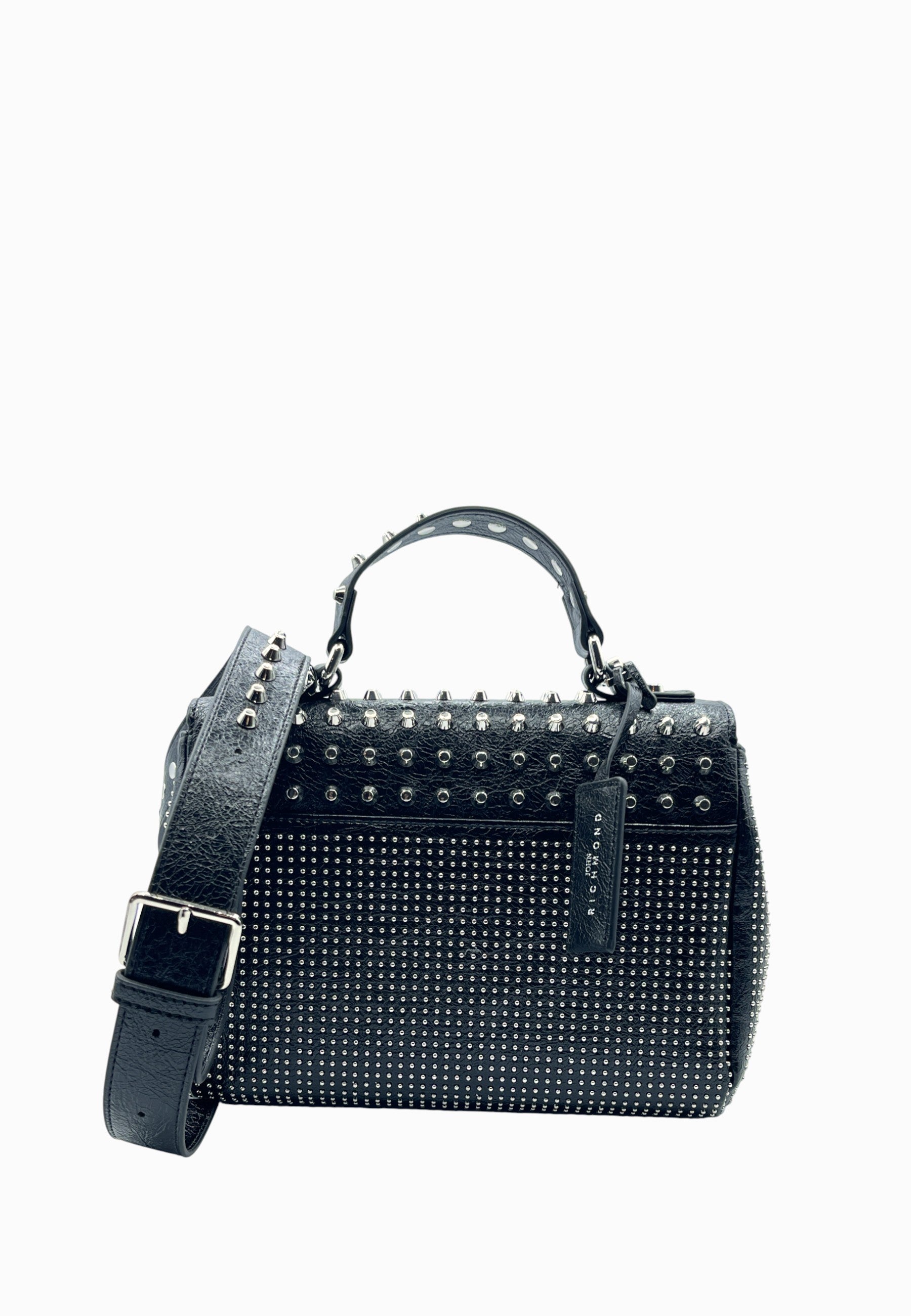 • BORSA A MANO E A TRACOLLA FULL MICRO BORCHIE E BORCHIE E LOGO SULLA PARTE ANTERIORE
