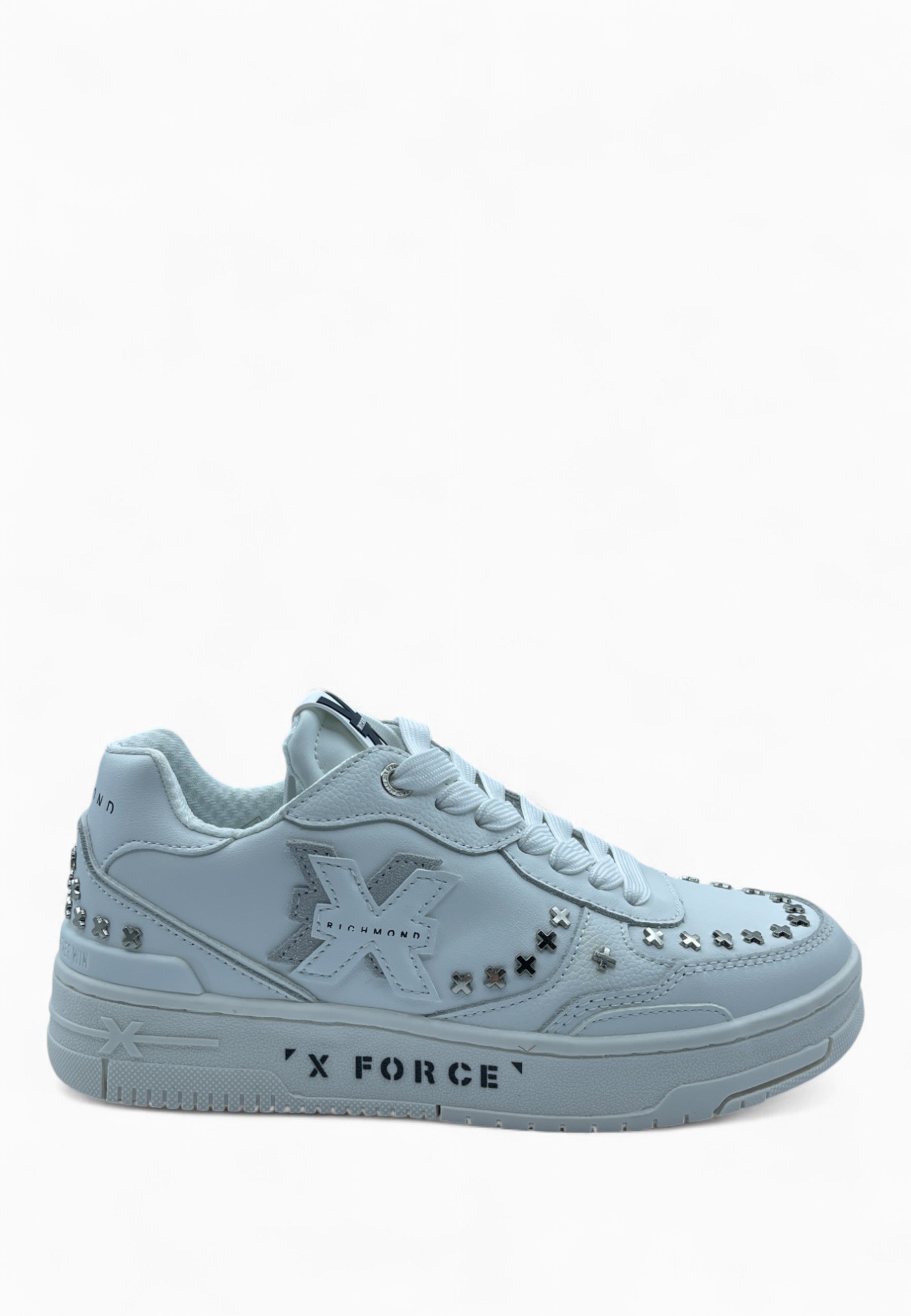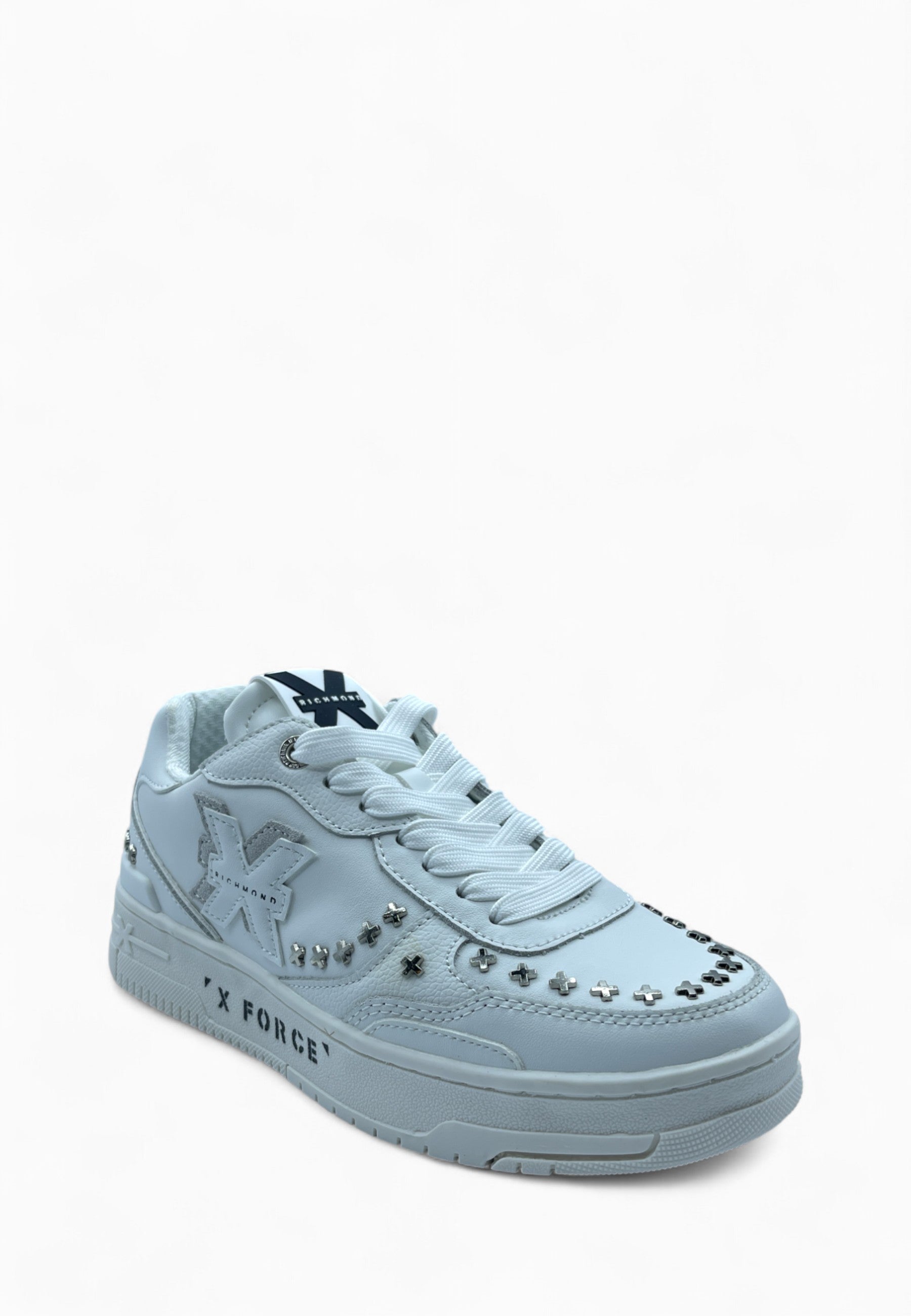 • SNEAKERS ARRICCHITA DA BORCHIE A X COLORE ARGENTO E LOGO SUL LATO ESTERNO