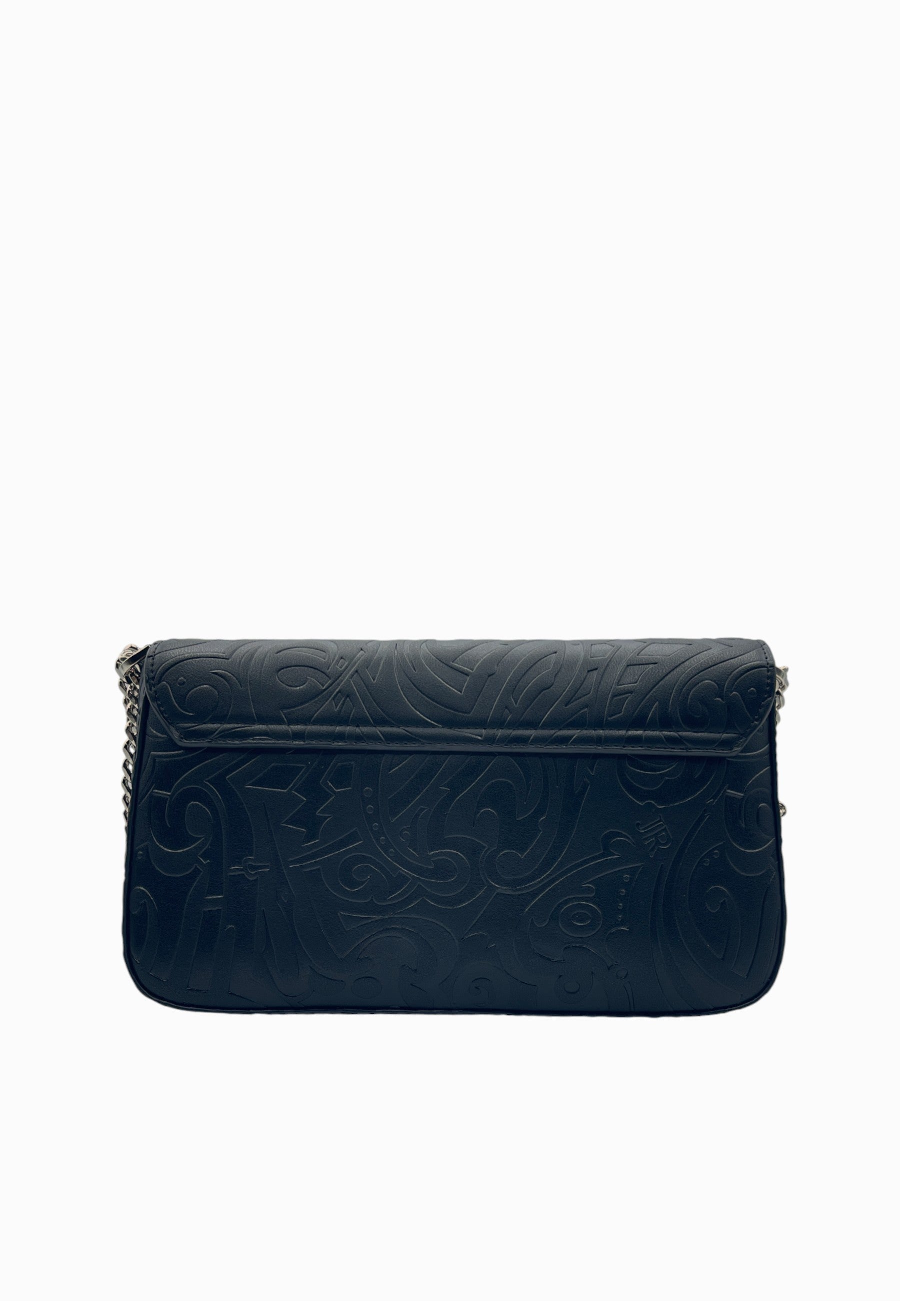 • BORSA MODELLO POSTINA CON LOGATURA E DETTAGLI IN RILIEVO COLORE ARGENTO,PORTABILE A MANO O TRACOLLA A CATENA