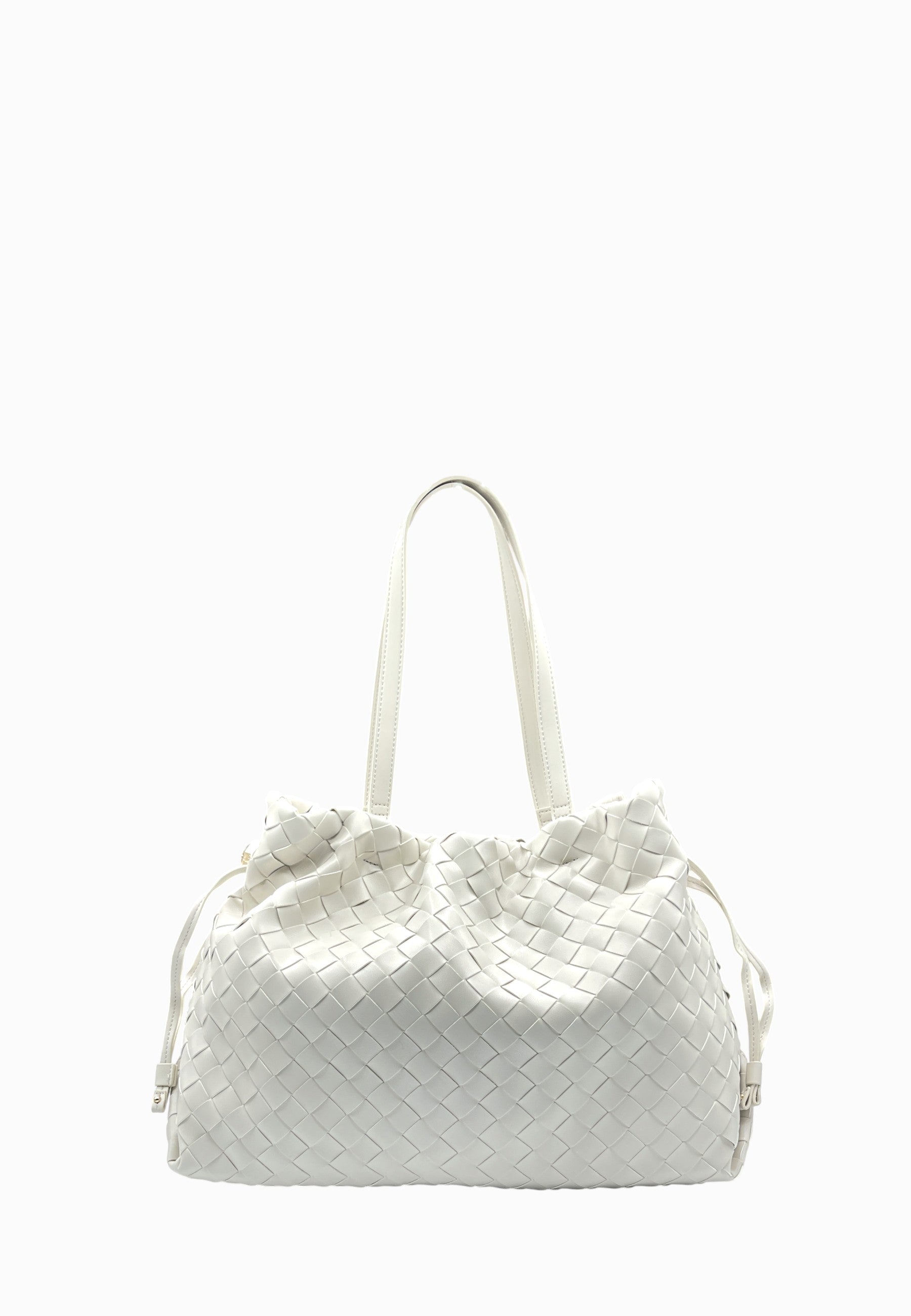 • BORSA INTRECCIATA CON BOTTONI LATERALI COLOR ORO CON LOGO ICONICO