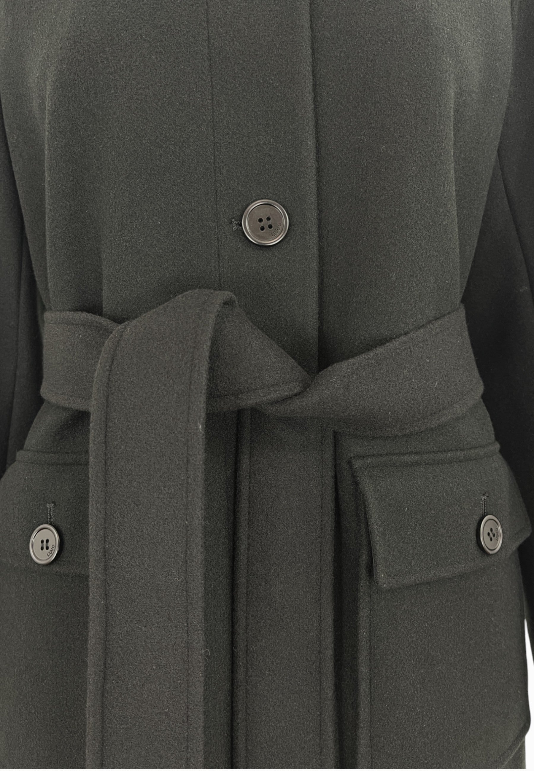 • CAPPOTTO TAGLIO CABAN,COLLO A CAMICIA, QUATTRO TASCHE FRONTALI,CINTURA IN VITA,CHIUSURA CON BOTTONI