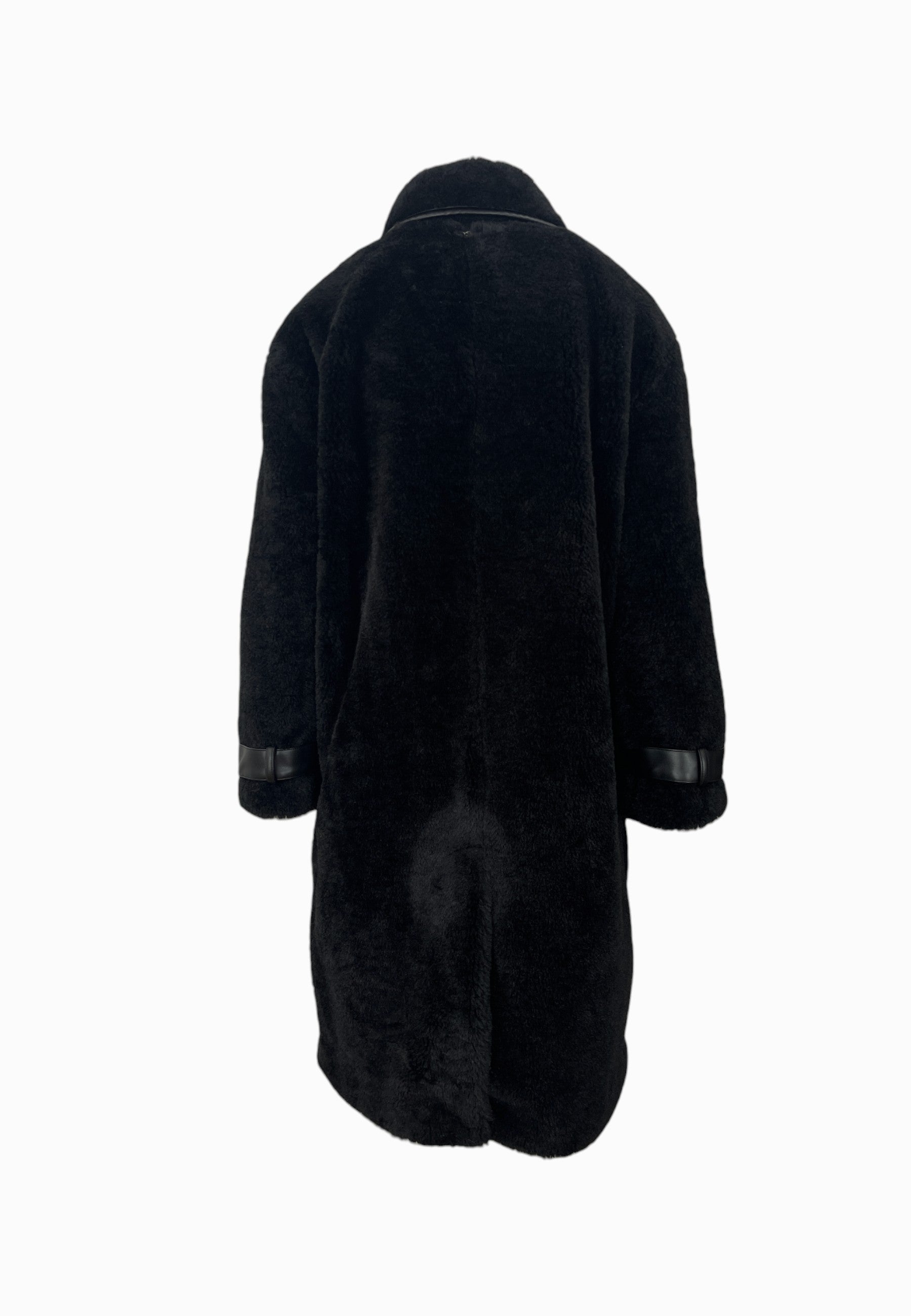 • ECOMONTONE LUNGO,CHIUSURA CON BOTTONE,DETTAGLI IN ECOPELLE,COLLO A CAMICIA ,DUE TASCHE