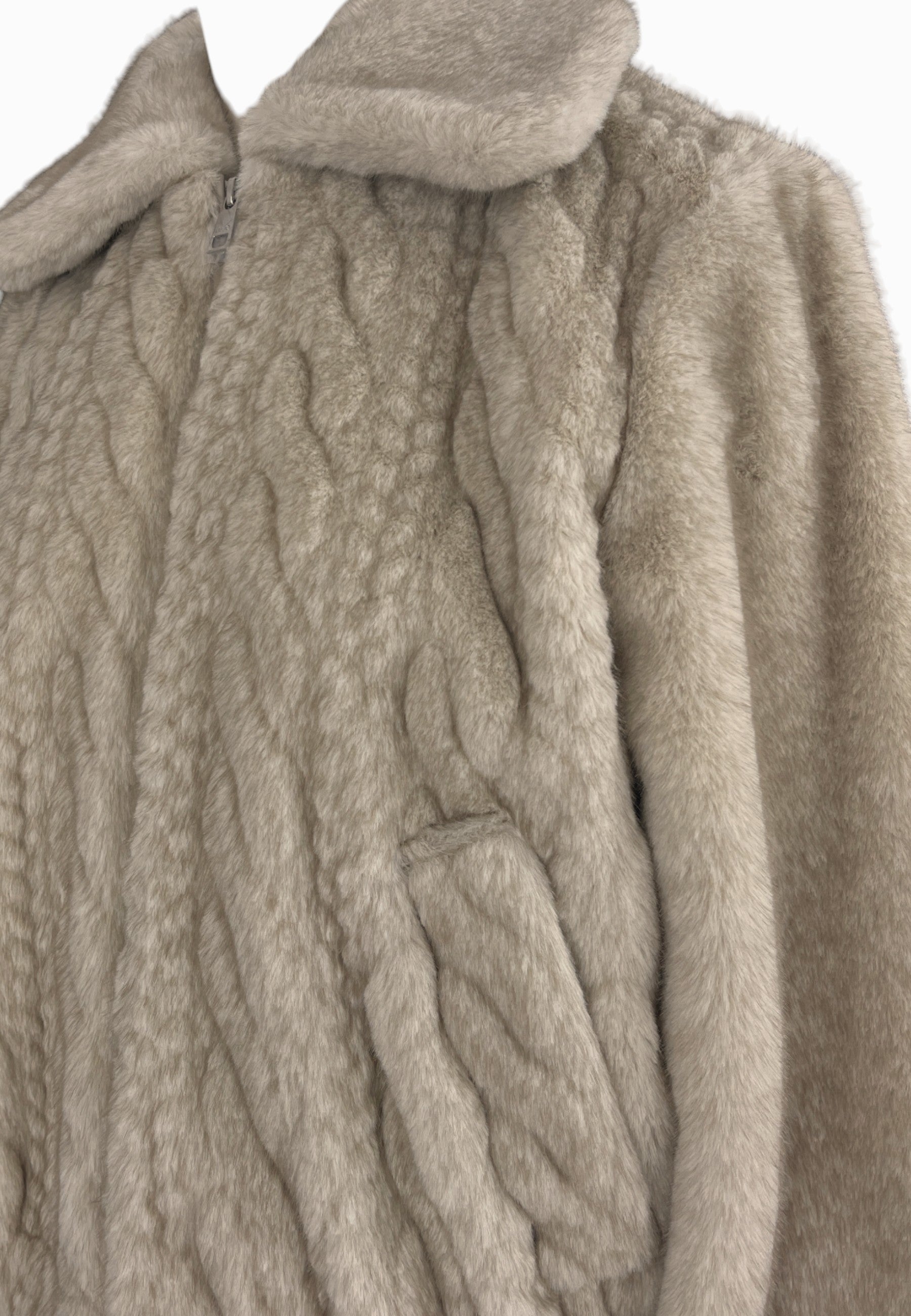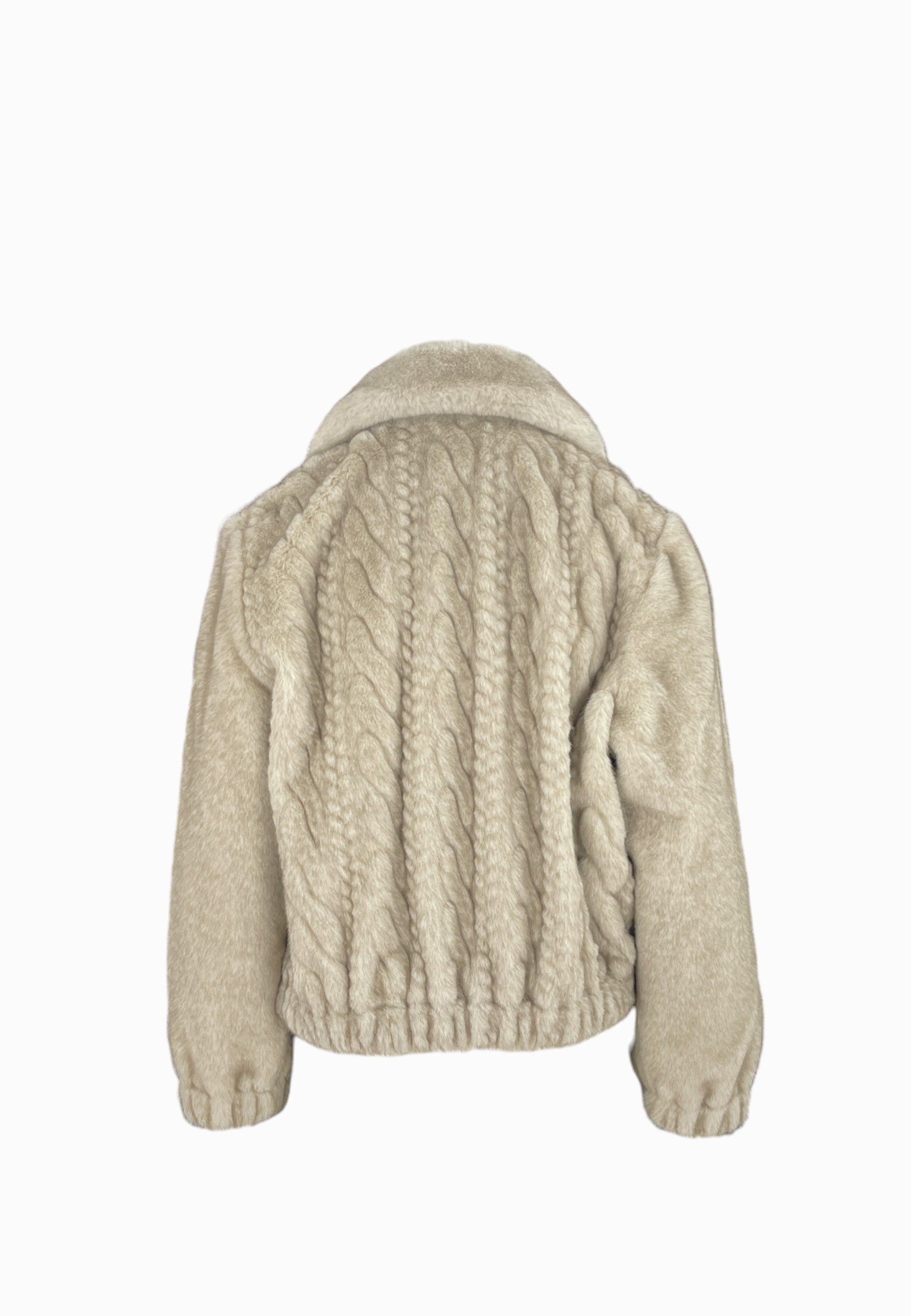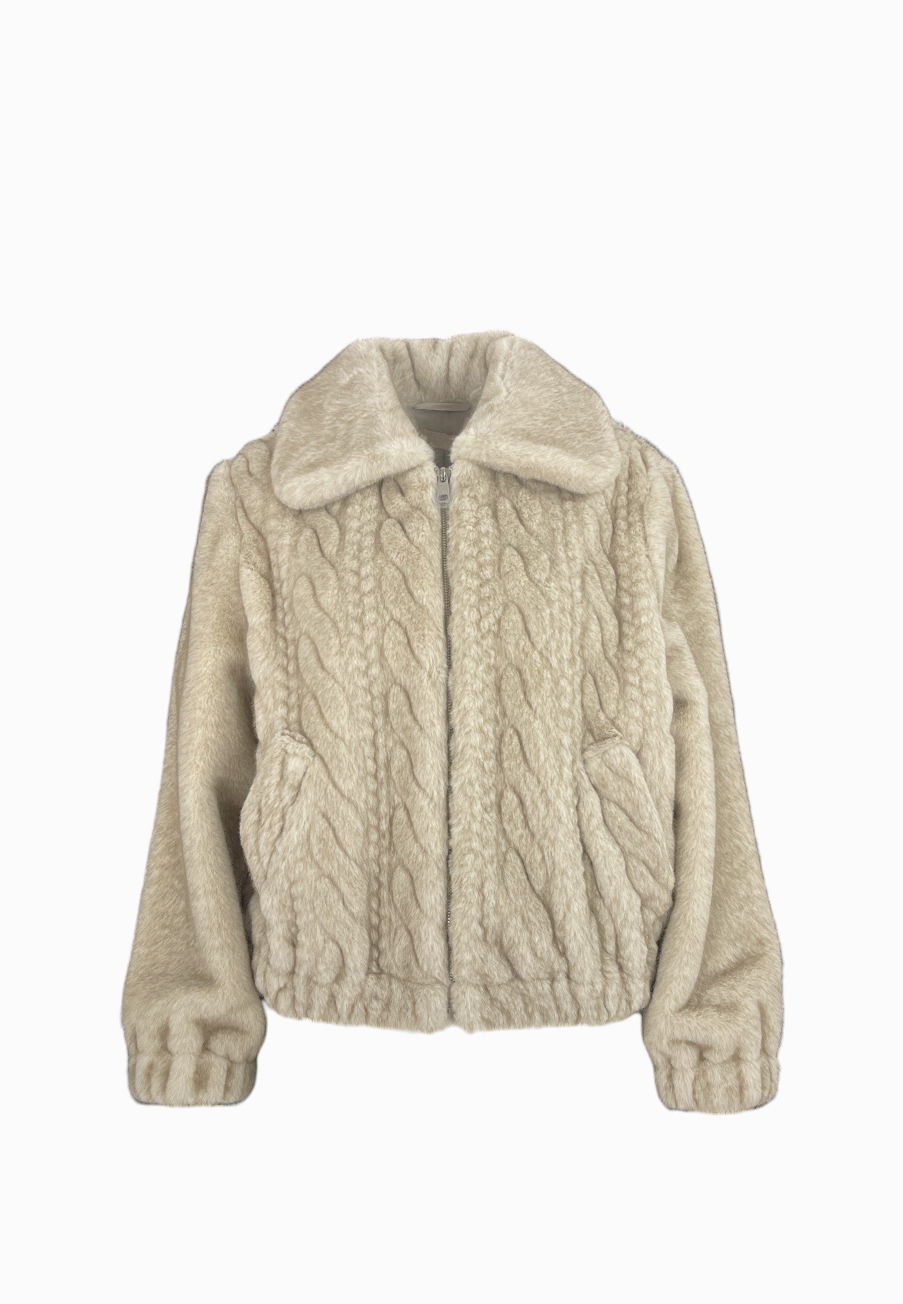 • ECOPELLICCIA MODELLO BOMBER,TRAMA A TRECCE,COLLO CAMICIA,CHIUSURA CON CERNIERA,DUE TASCHE