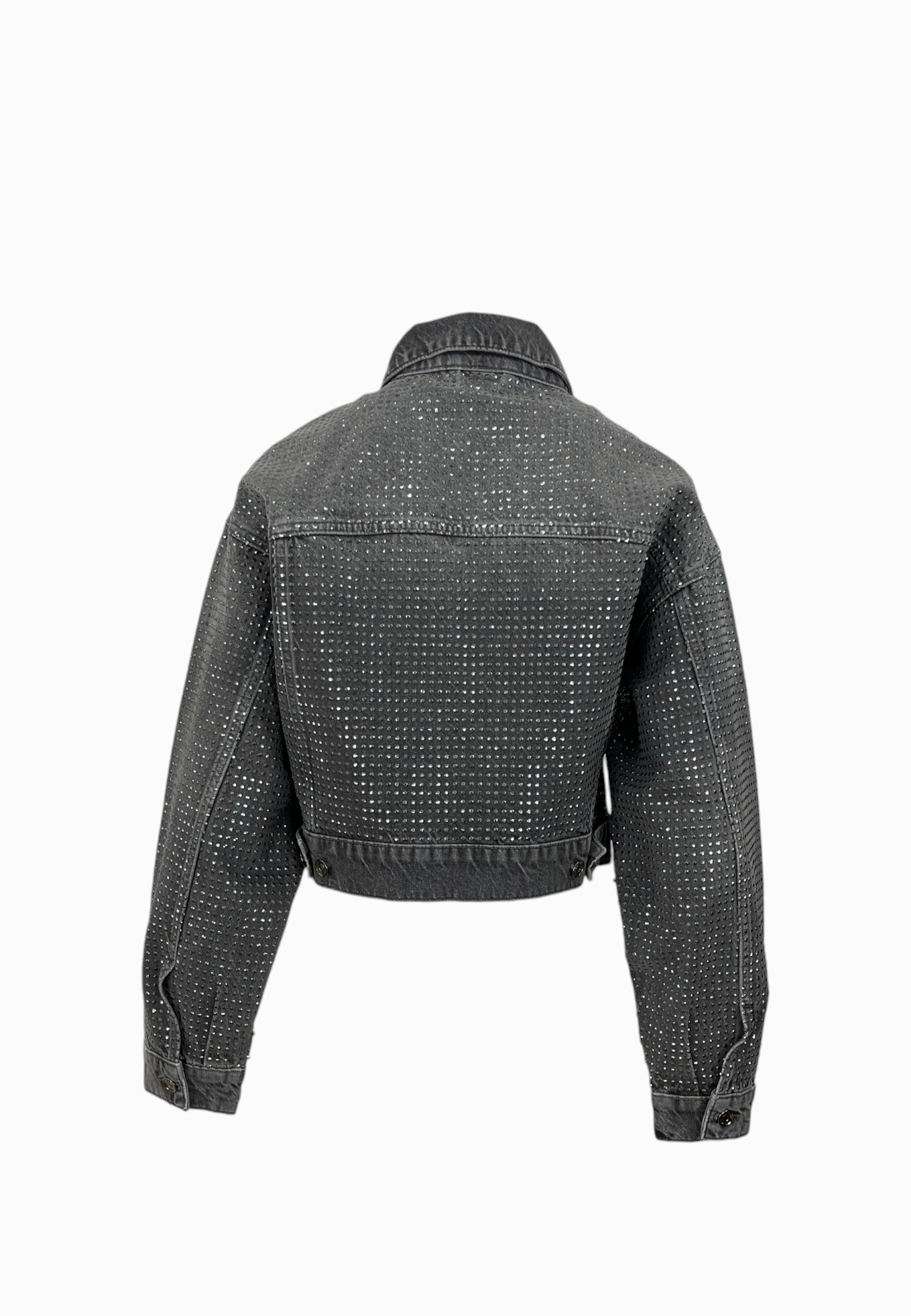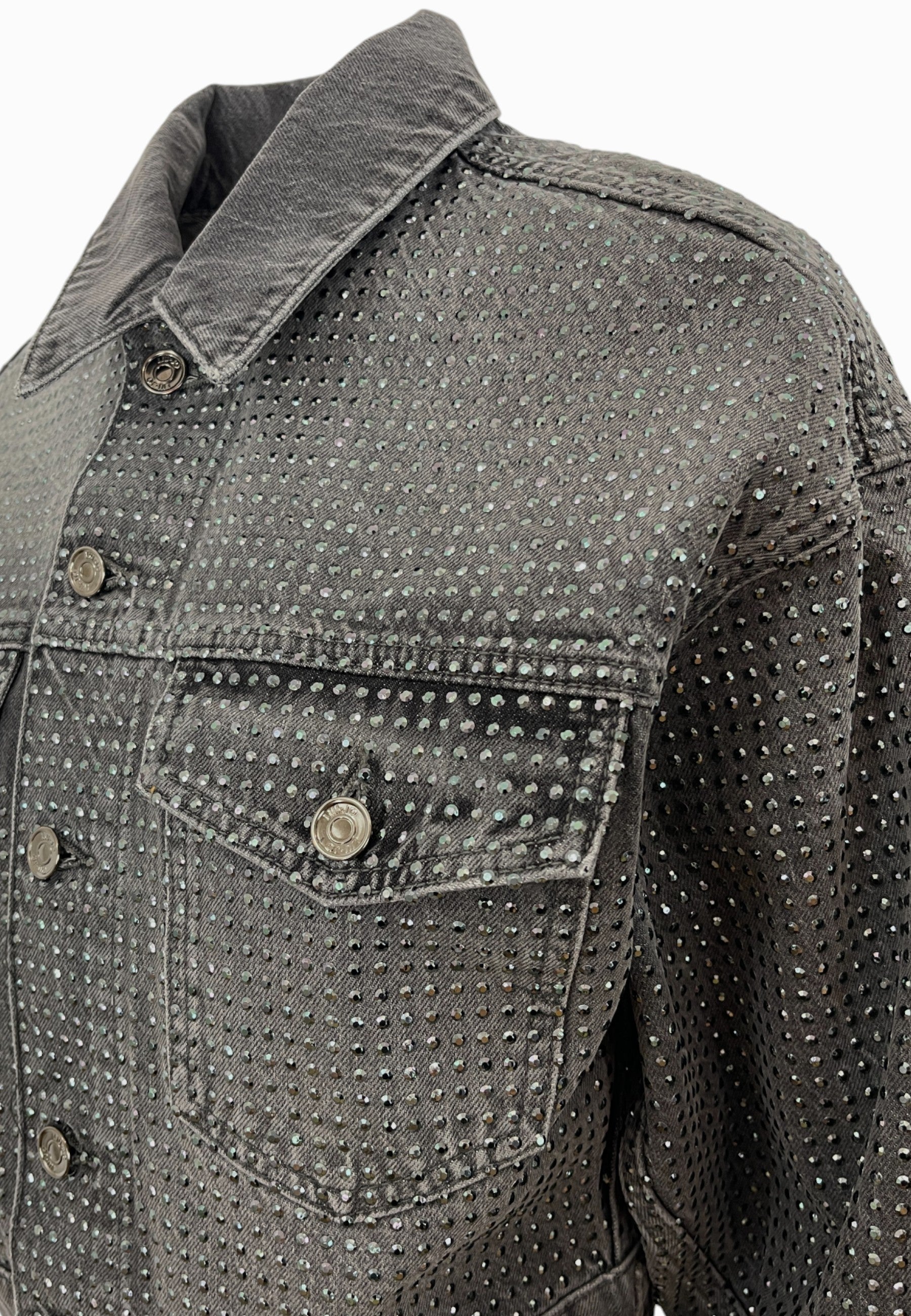 • GIUBBINO JEANS CORTO ARRICCHITO DA STRASS,CHIUSURA CON BOTTONI