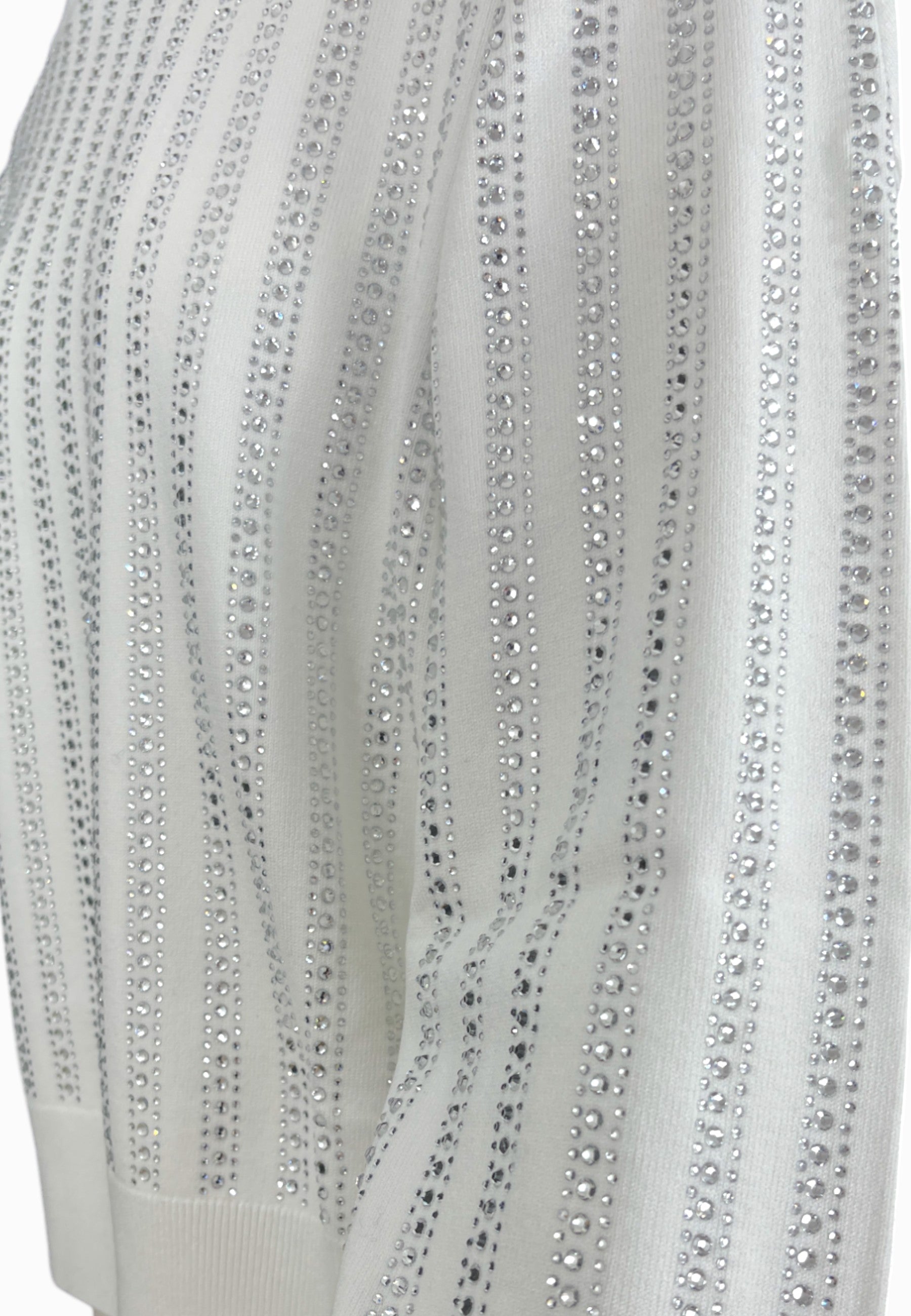 • MAGLIA GIROCOLLO LARGO,MODELLO SCATOLETTA CON SPALLE CADENTI, STRASS COLORE ARGENTO DECORATIVI CHE CREANO UN DISEGNO A COSTINE