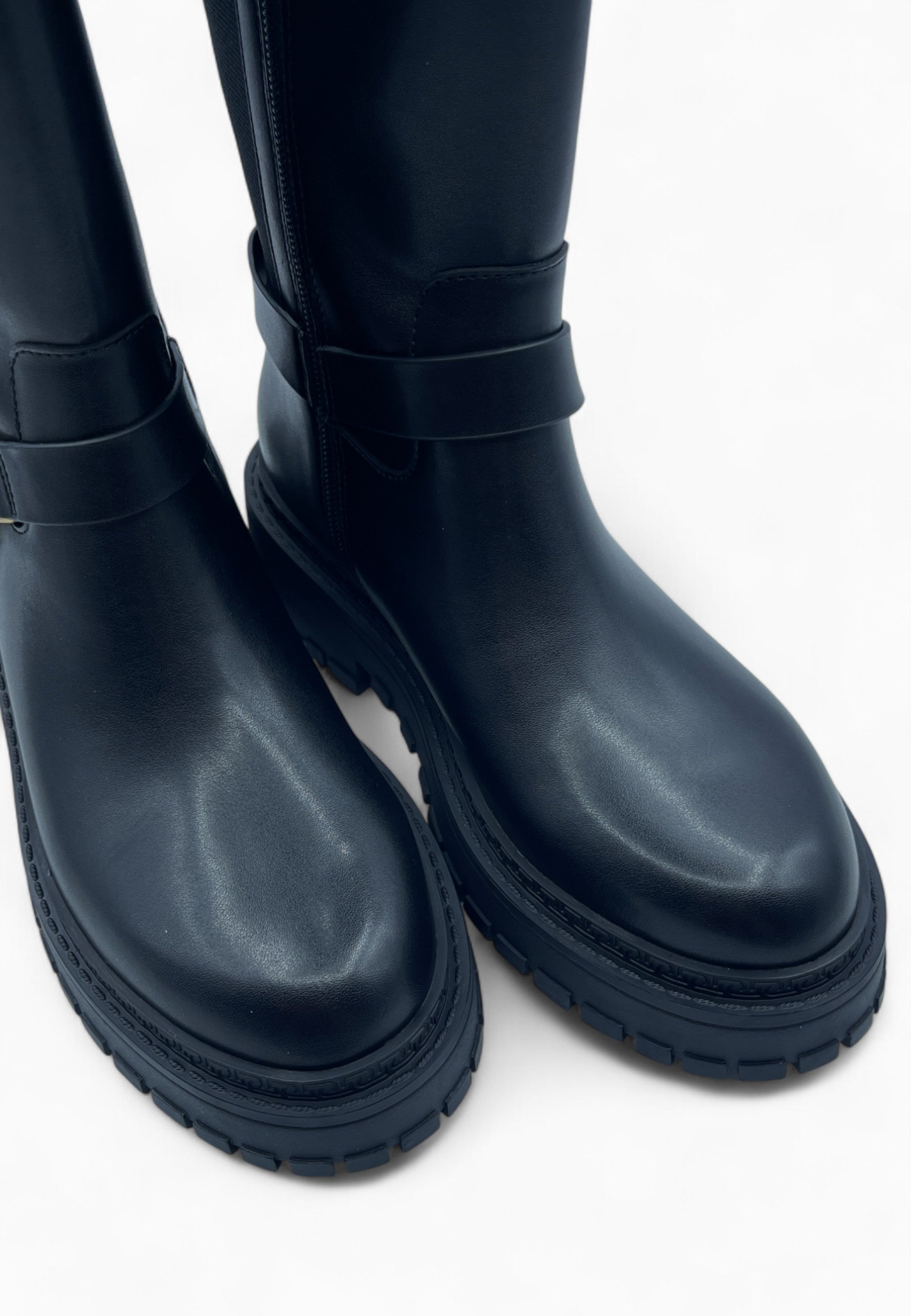 • STIVALE CON CERNIERA ED ELASTICO SUL RETRO,FIBBIA CON LOGO COLORE ORO EFFETTO OPACO