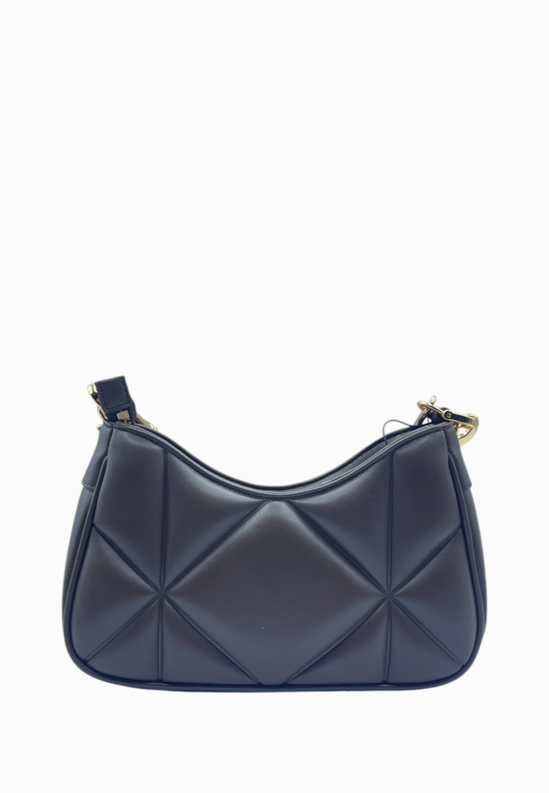 • BORSA MODELLO MEZZALUNA,LAVORAZIONE MATELASSÈ TRIANGOLARE,LOGO COLORE ORO.PORTABILE A SPALLA O TRACOLLA,PORTACARTE INTERNO