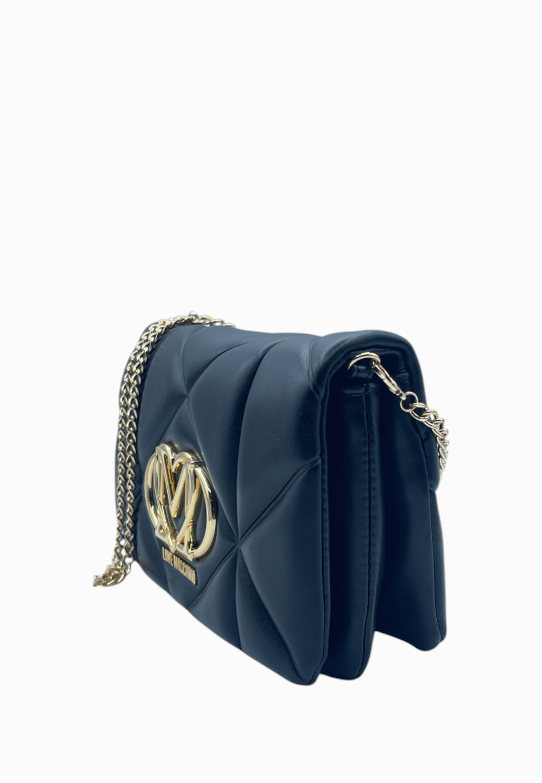 • BORSA MODELLO POSTINA ,LAVORAZIONE MATELASSÈ TRIANGOLARE,LOGO FRONTALE COLORE ORO,2 SCOMPARTI,UNA TASCA INTERNA,TRACOLLA A CATENA