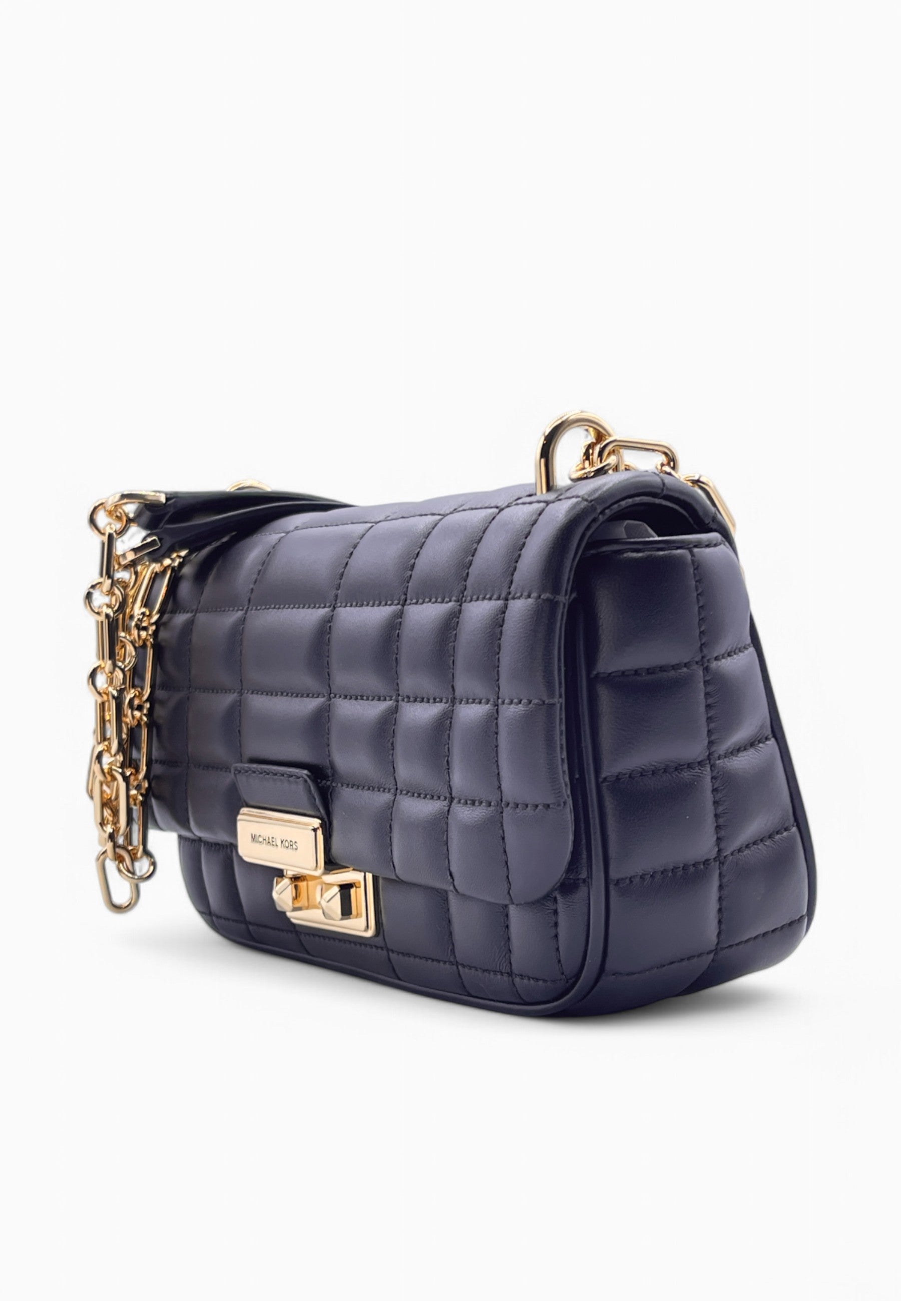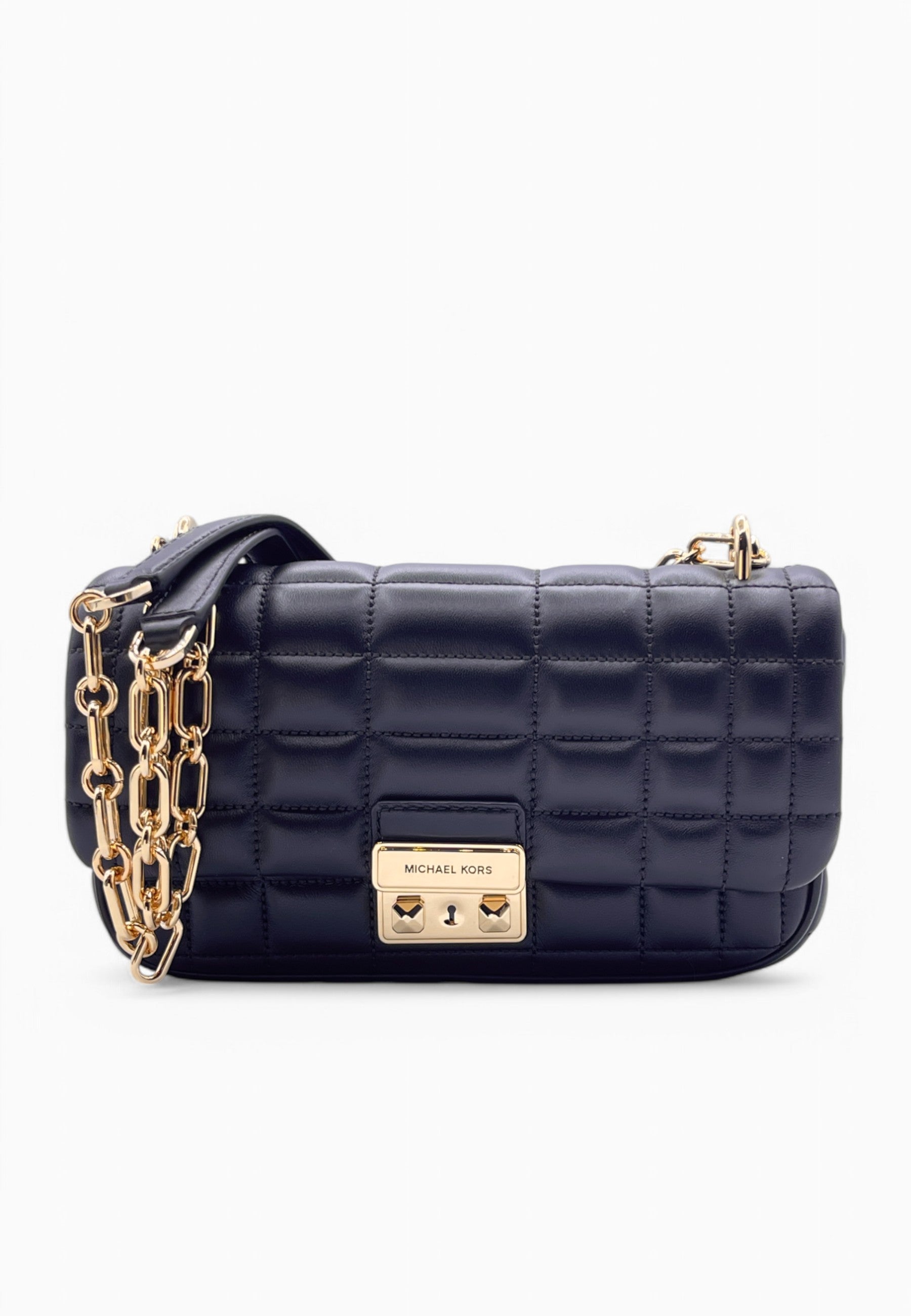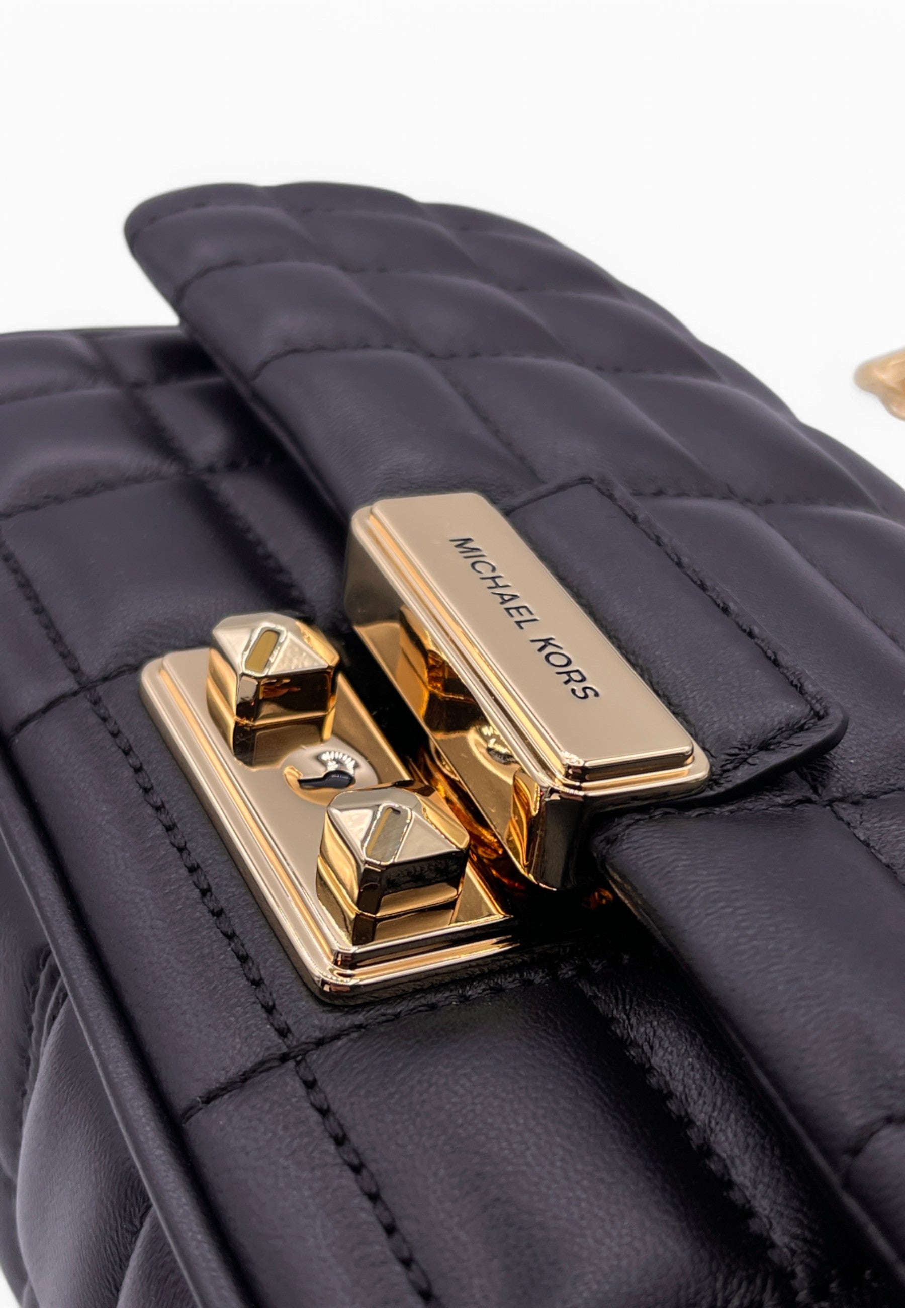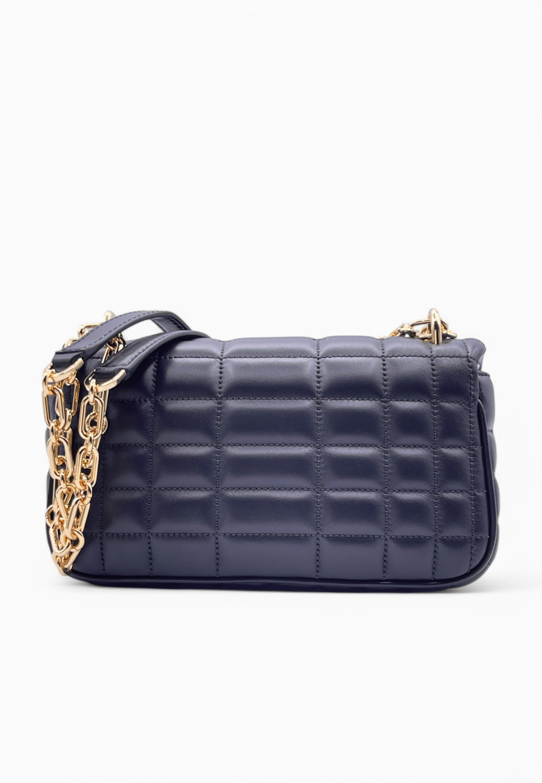 • BORSA CROSSBODY, A TRACOLLA, PELLE TRAPUNTATA, CHIUSURA A BOTTONE, LOGO ICONICO INCISO, UNO SCOMPARTO