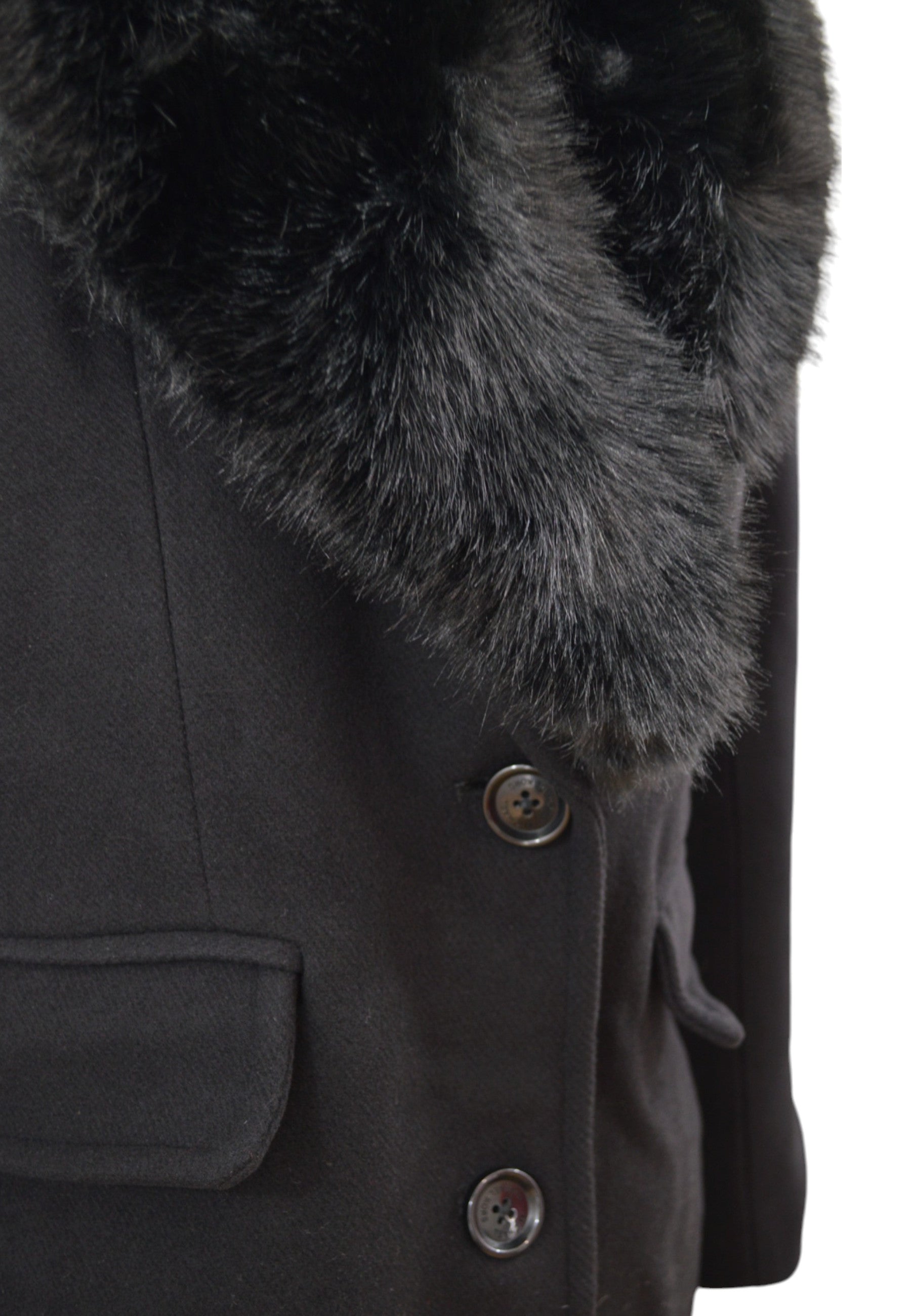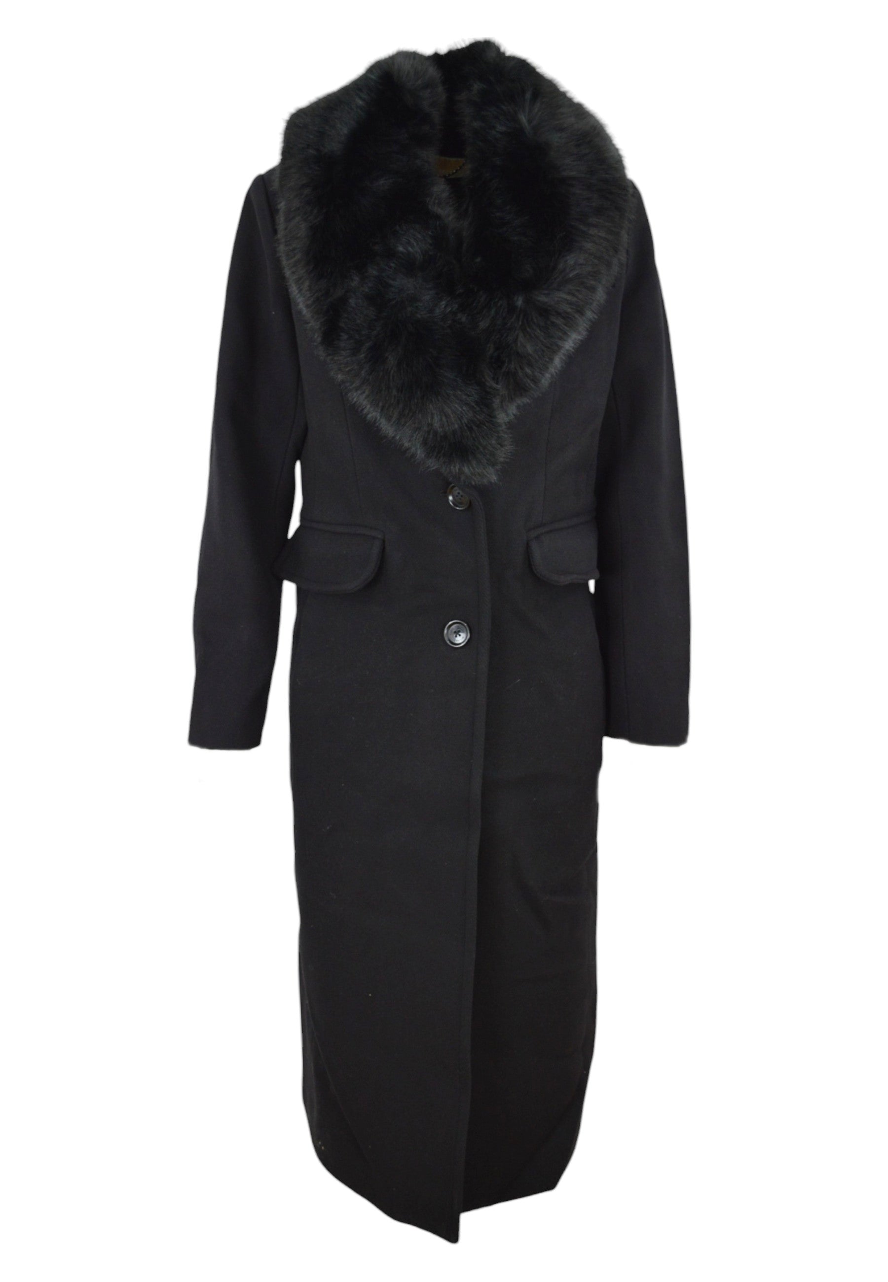• CAPPOTTO LUNGO, MISTO LANA, MONOPETTO, FINTA PELLICCIA APPLICATA, TRE TASCHE