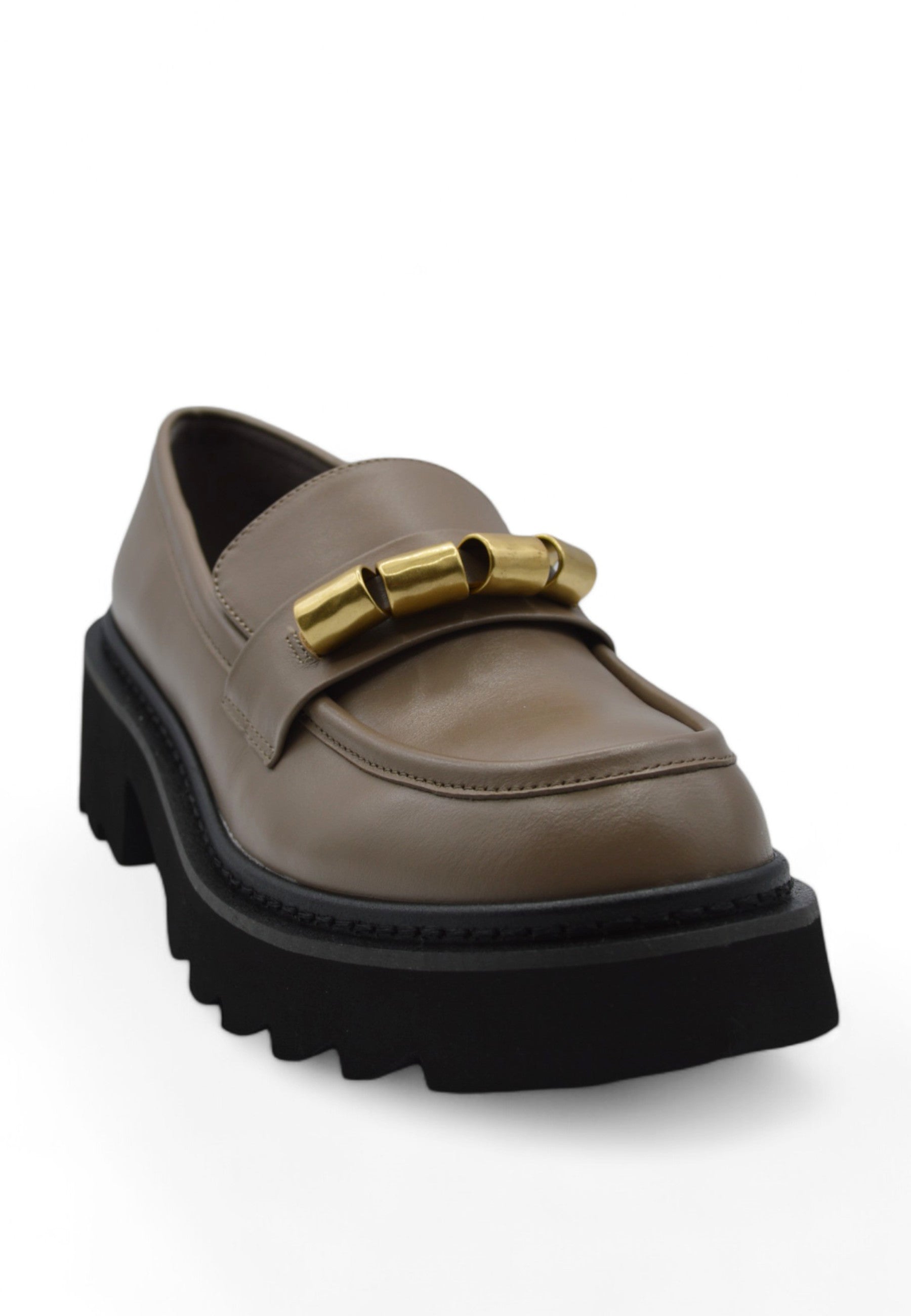 • MOCASSINO, SUOLA PLATFORM, TOMAIA IN PELLE, FASCIA CON DETTAGLIO APPLICATO