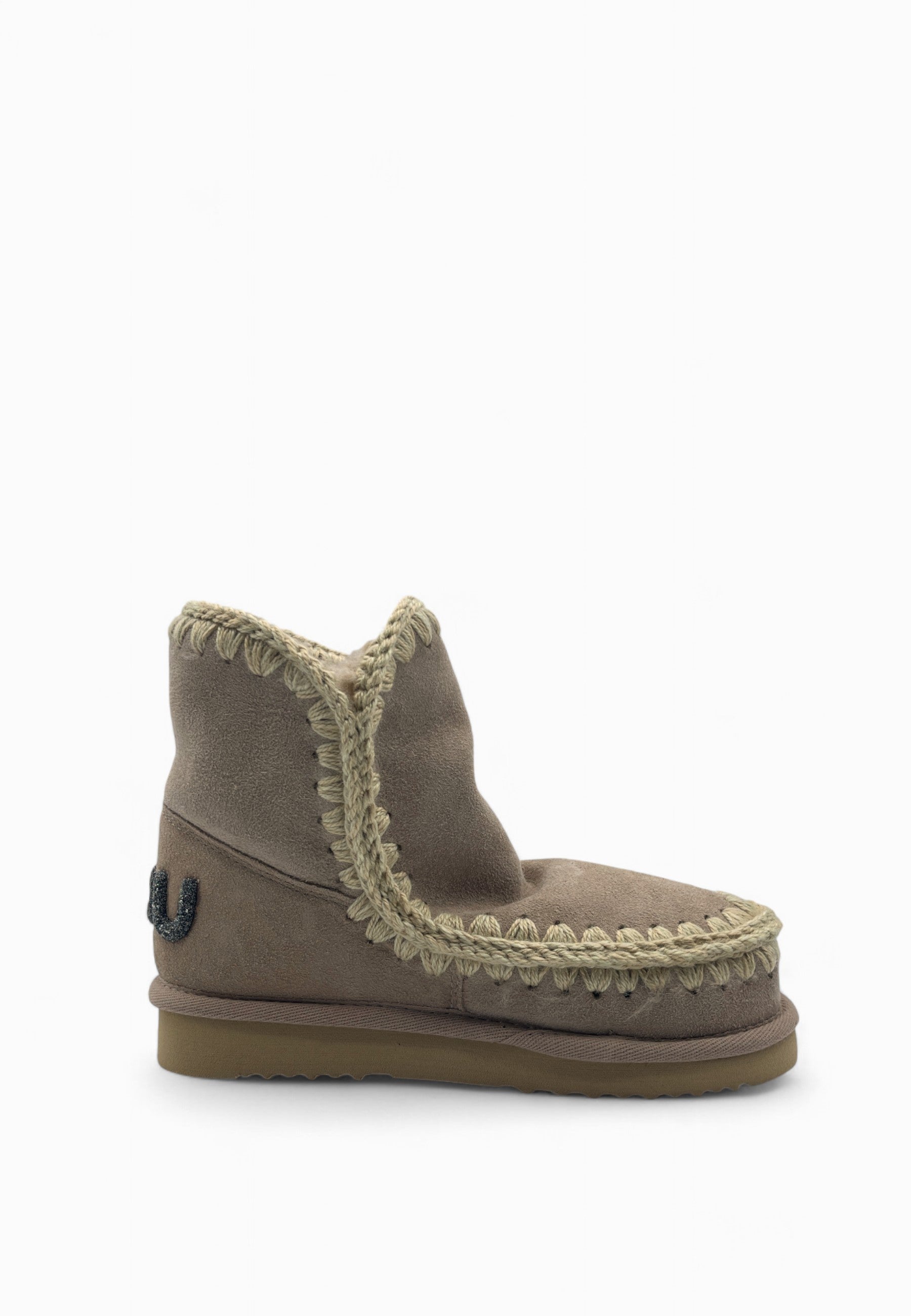 • BOOTS IMBOTTITO RIFINITO A MANO,GAMBALE MEDIO,LOGO GLITTERATO IN RILIEVO SUL RETRO