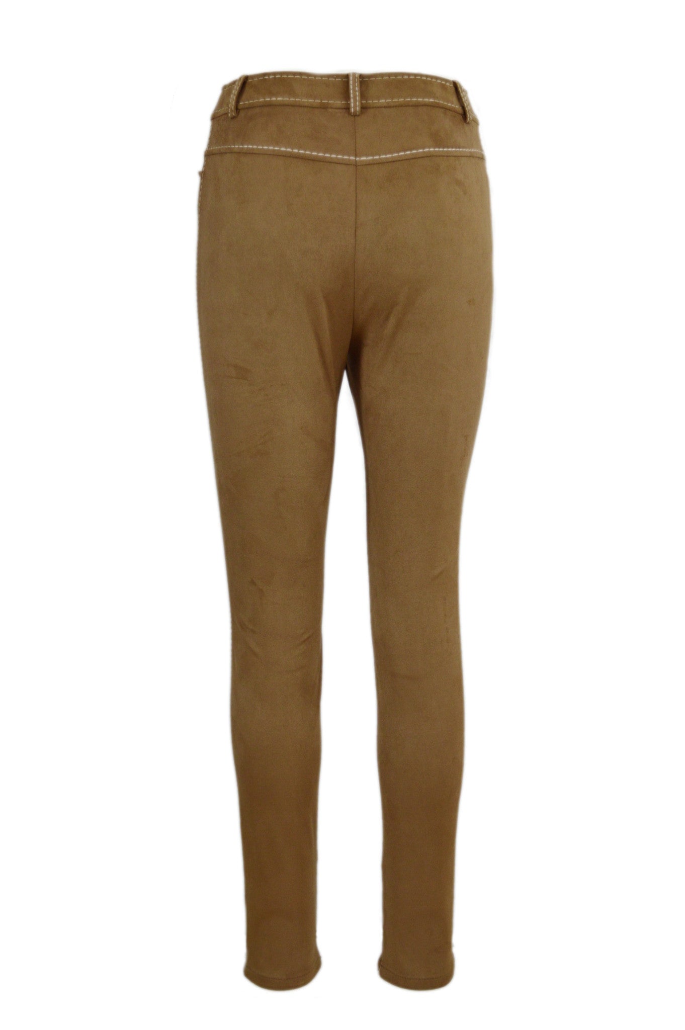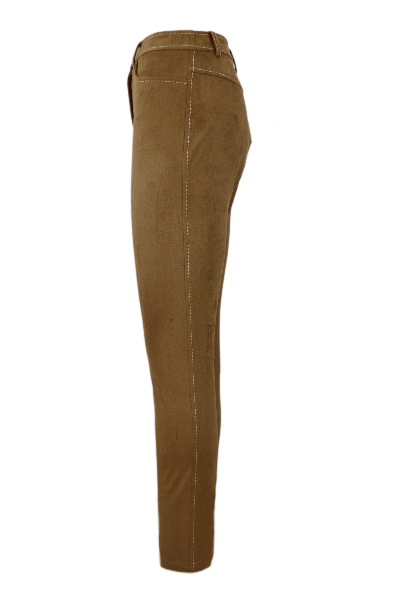 • PANTALONE FULL EFFETTO CAMOSCIO CON CUCITURE BEIGE, DUE TASCHE E ZIP SUL FONDO