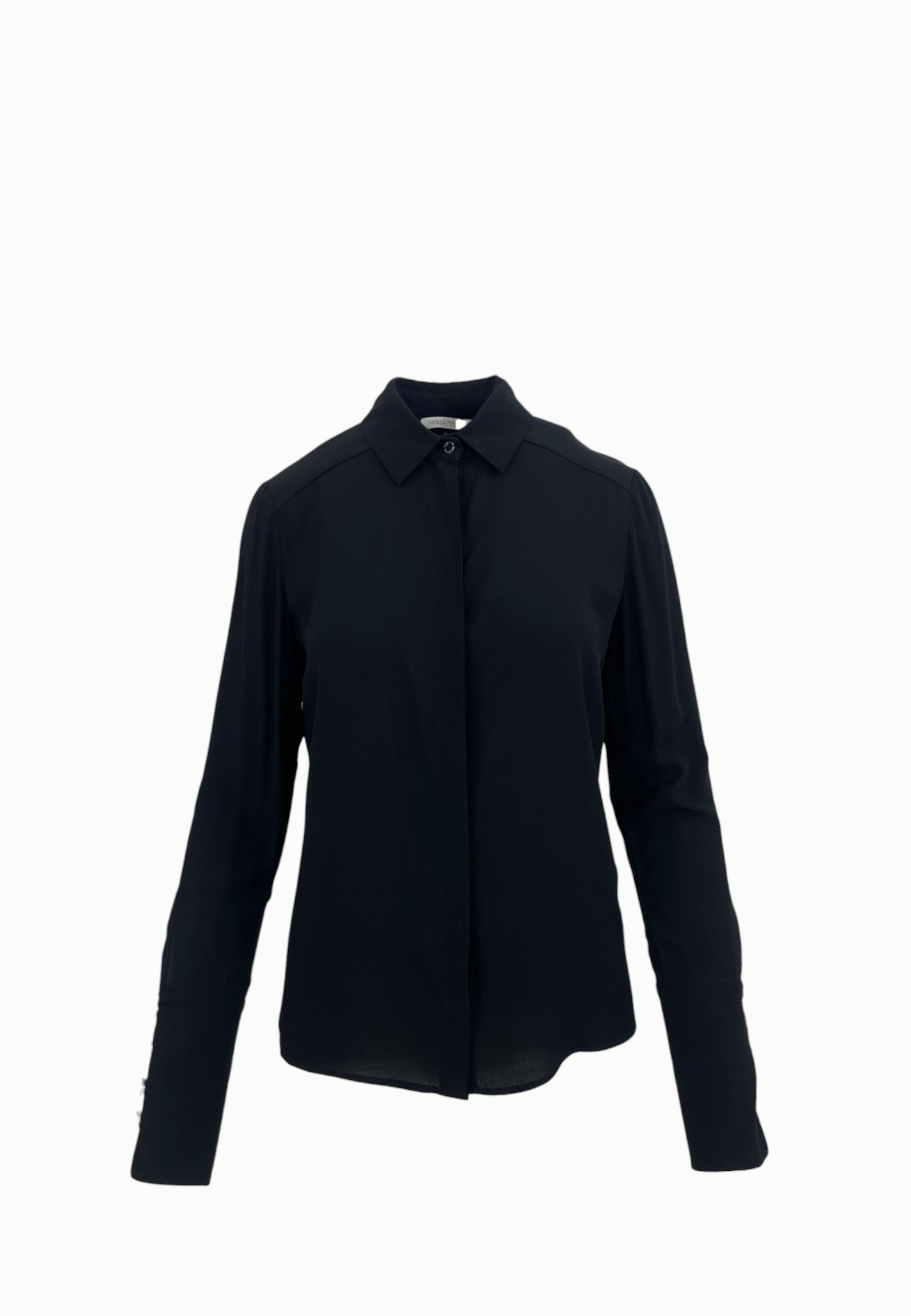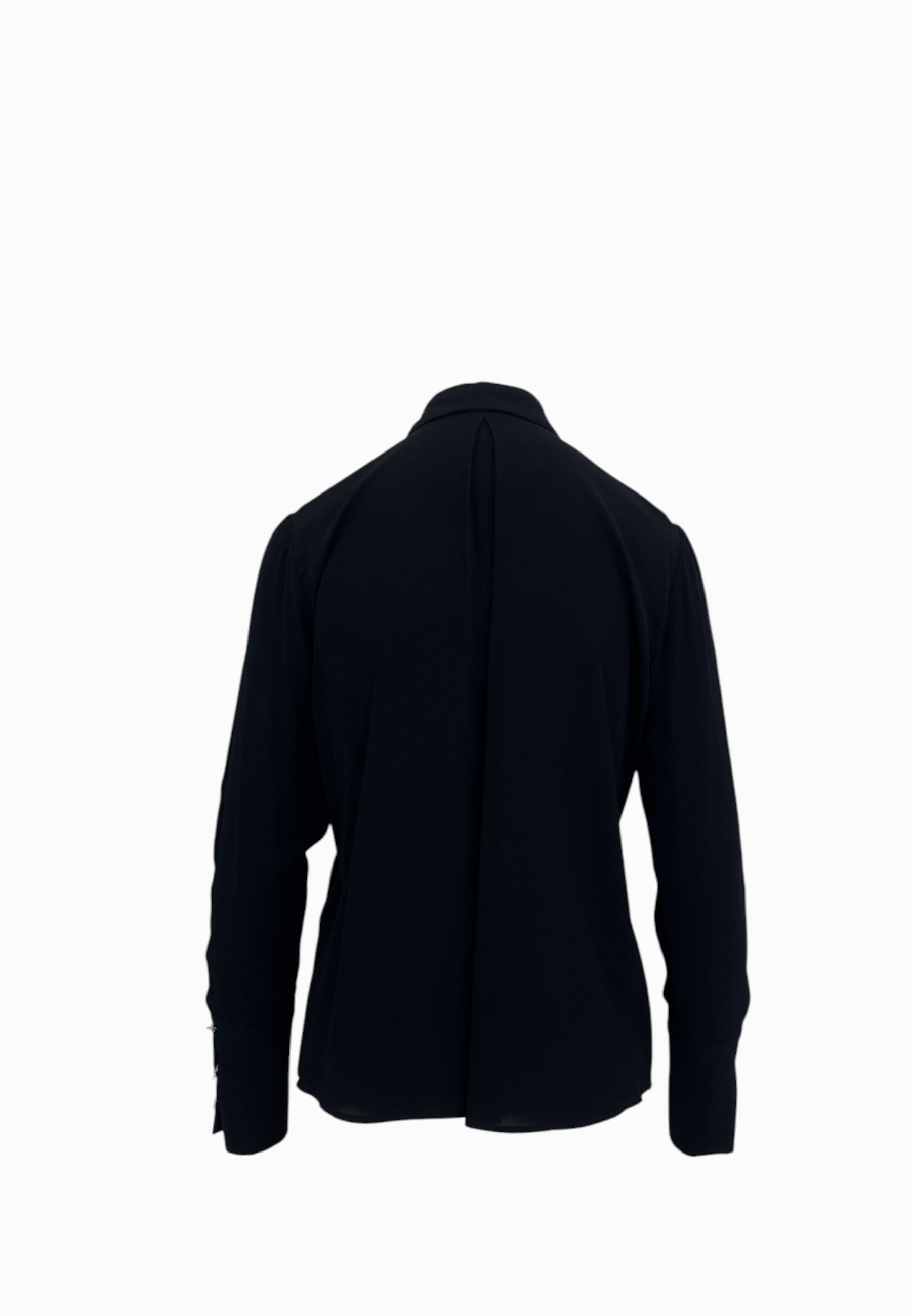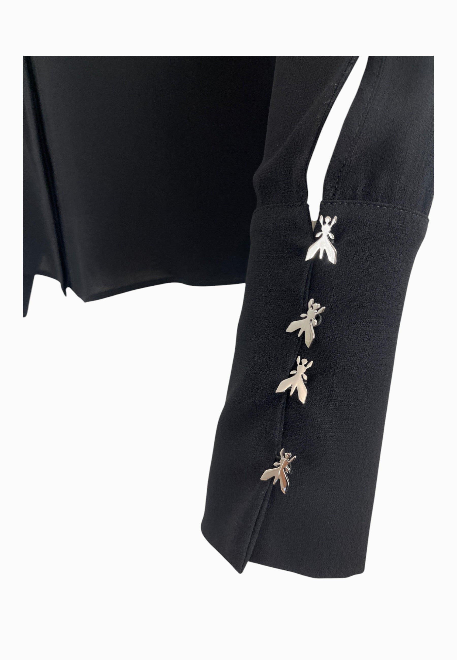 • CAMICIA IN VISCOSA CON CHIUSURA A BOTTONI, MANICHE LUNGHE E DETTAGLI METALLICI LOGATI SUI POLSI