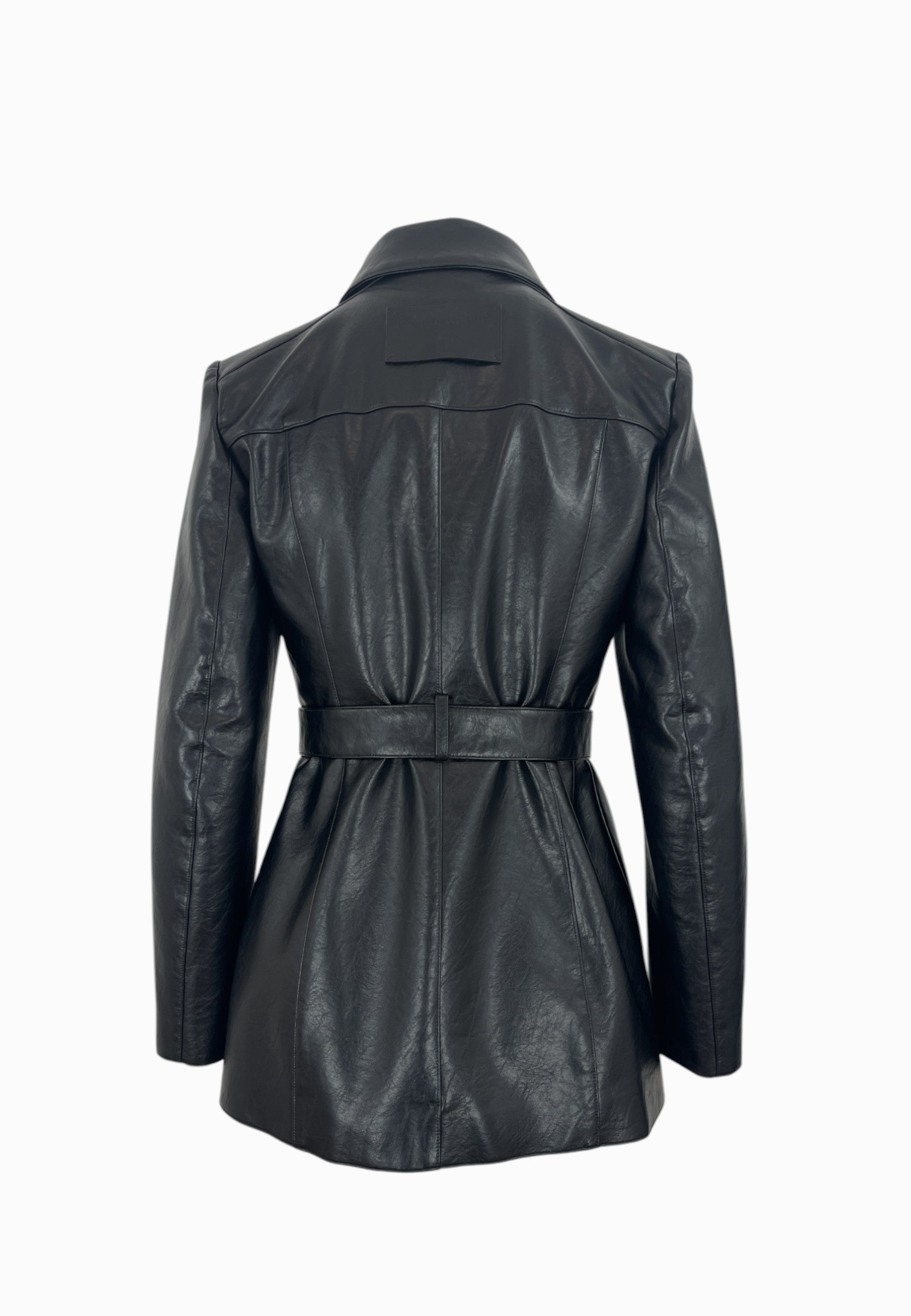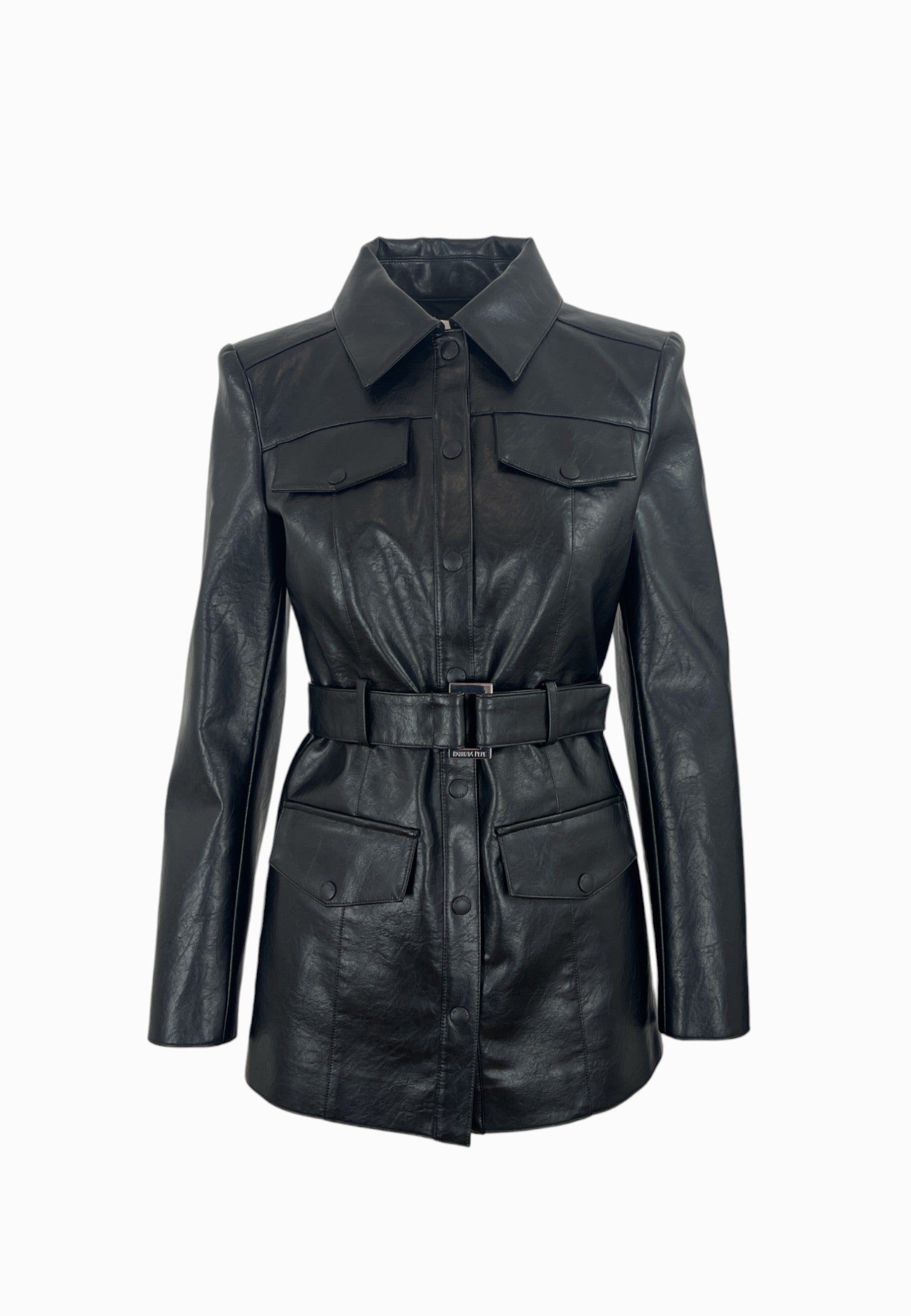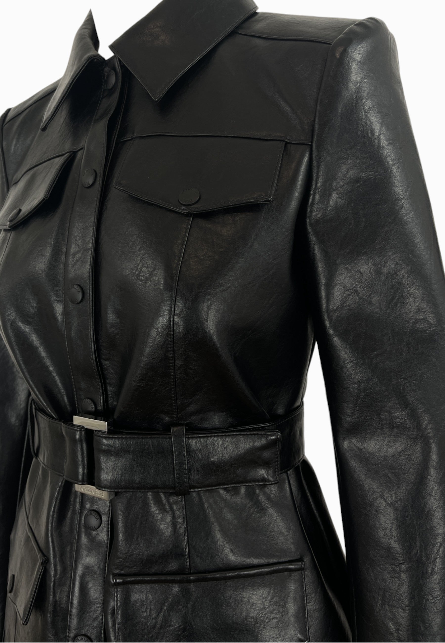• GIACCA IN SILMILPELLE LUNGHEZZA MEDIA,COLLO A CAMICIA, CHIUSURA CON BOTTONI, QUATTRO TASCHE FRONTALI,CINTURA IN VITA