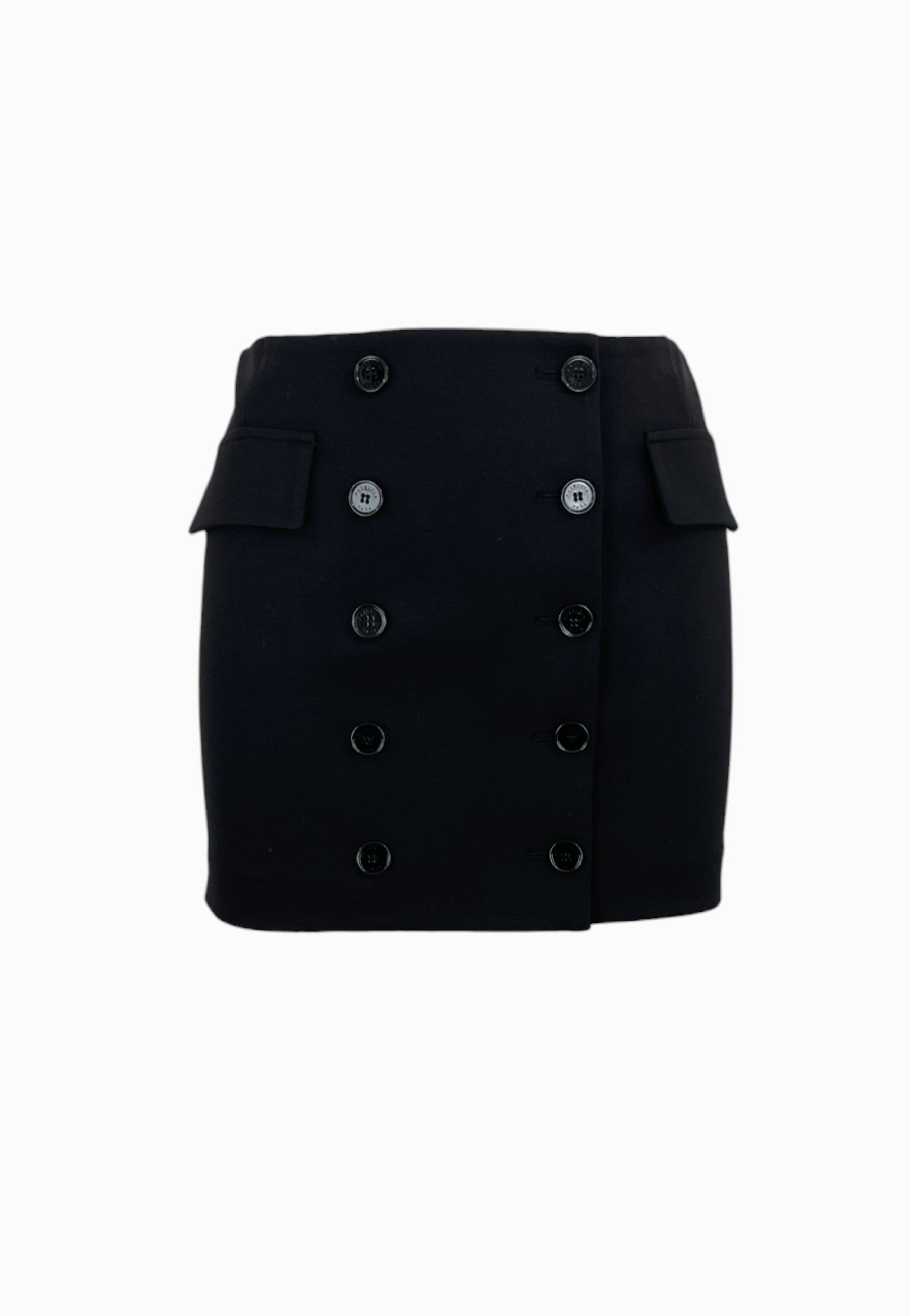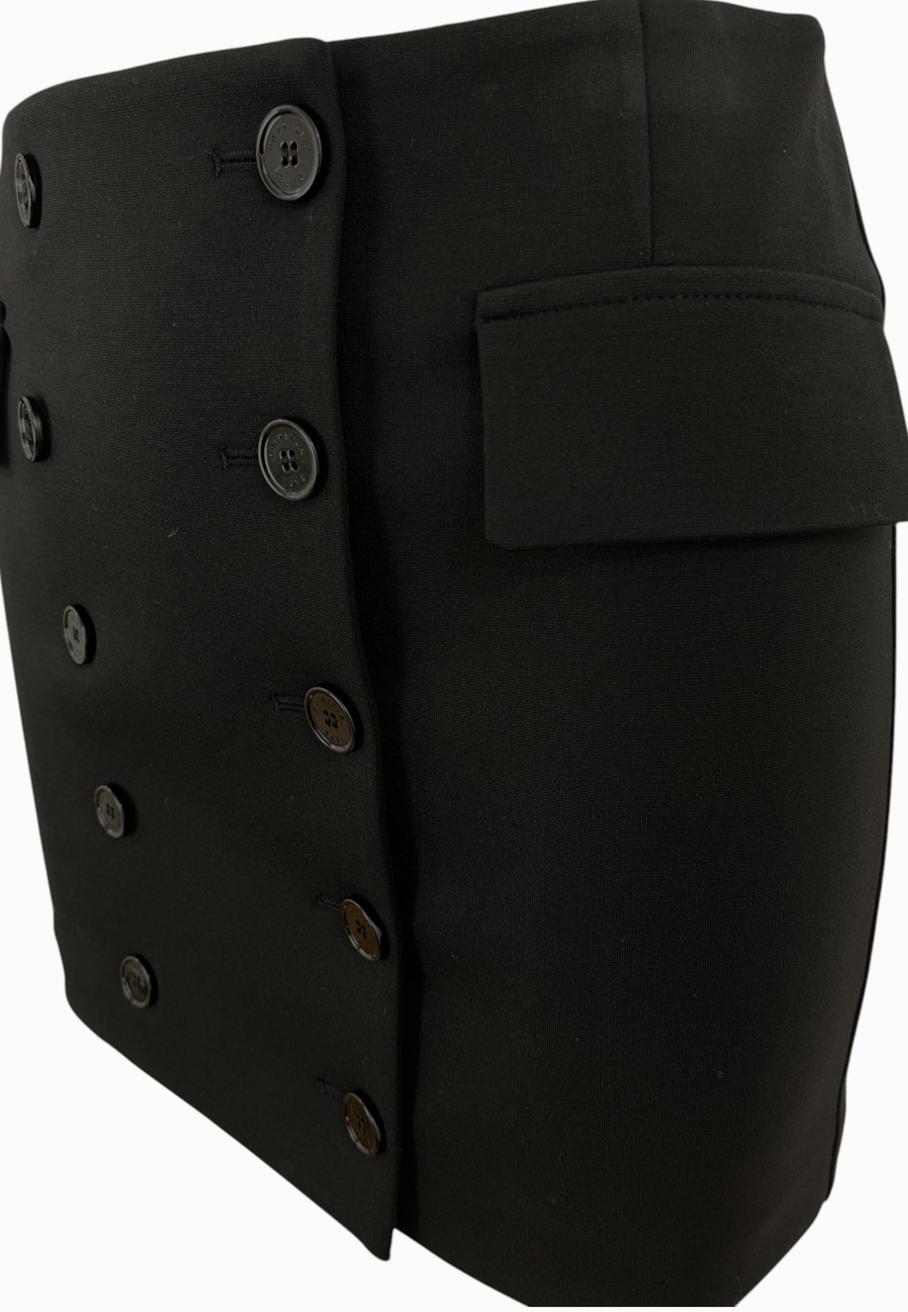 • MINIGONNA IN PUNTO STOFFA, DRITTA CON CHIUSURA FRONTALE A PORTAFOGLIO CON BOTTONI COLORE NERO
