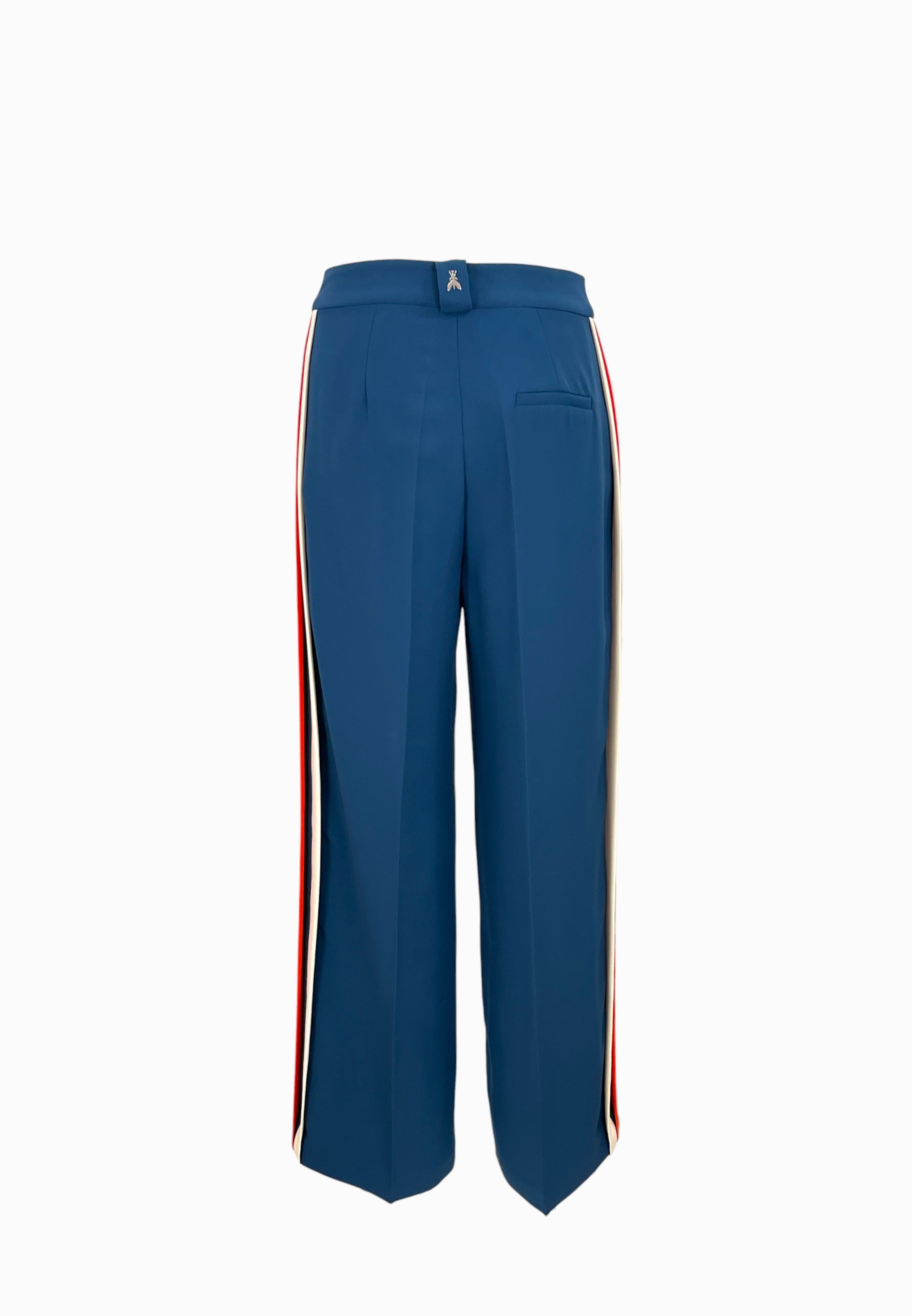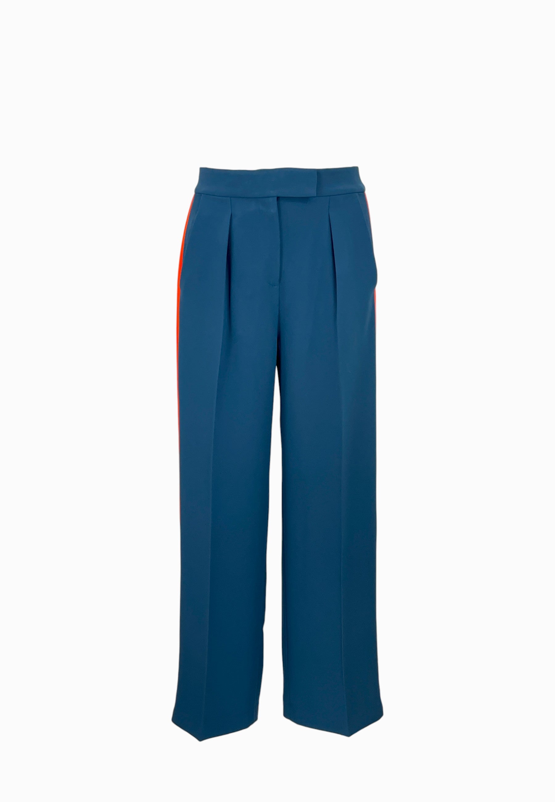 • PANTALONE A PALAZZO CON PIENCES PARTE ANTERIORE E BANDE LATERALI COLOLRATE A CONTRASTO