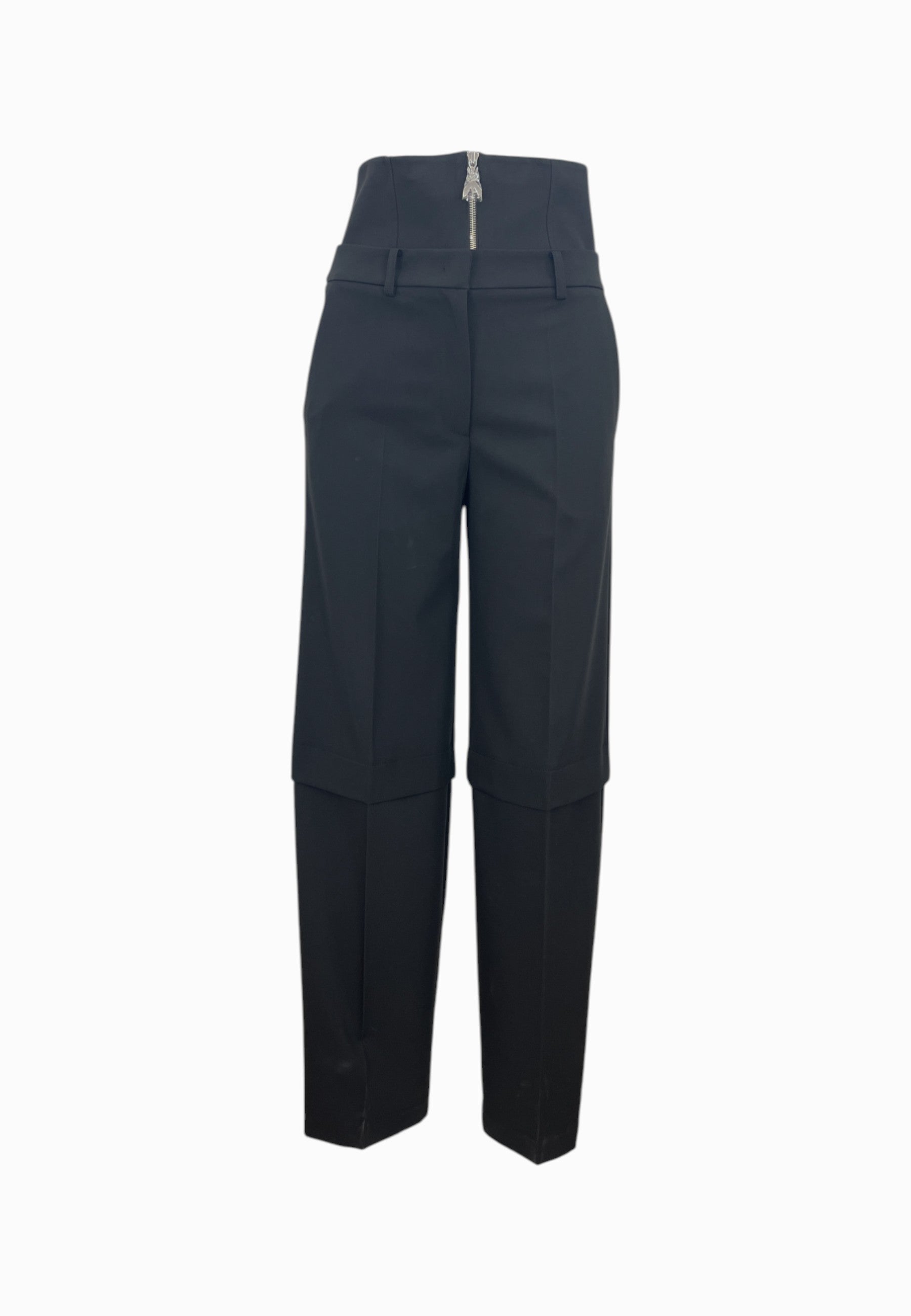• PANTALONE TASCA FILO,GAMBA LARGA ,VITA MOLTO ALTA CON CERNIERA COLORE ARGENTO LOGATA