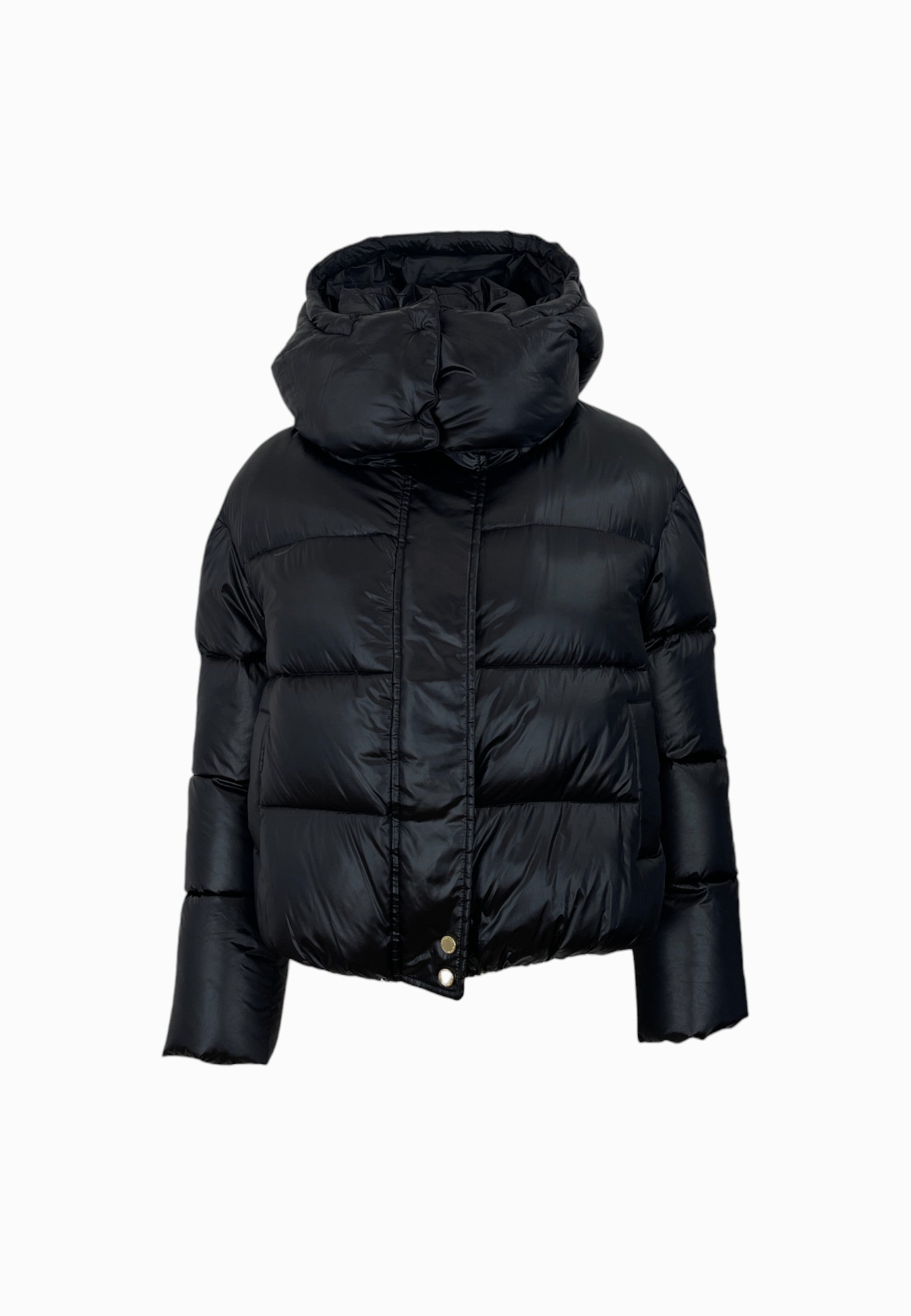 • GIUBBOTTO, PIUMINO CORTO, CAPPUCCIO REMOVIBILE, EFFETTO SPALMATO, DUE TASCHE, CHIUSURA A ZIP E BOTTONI