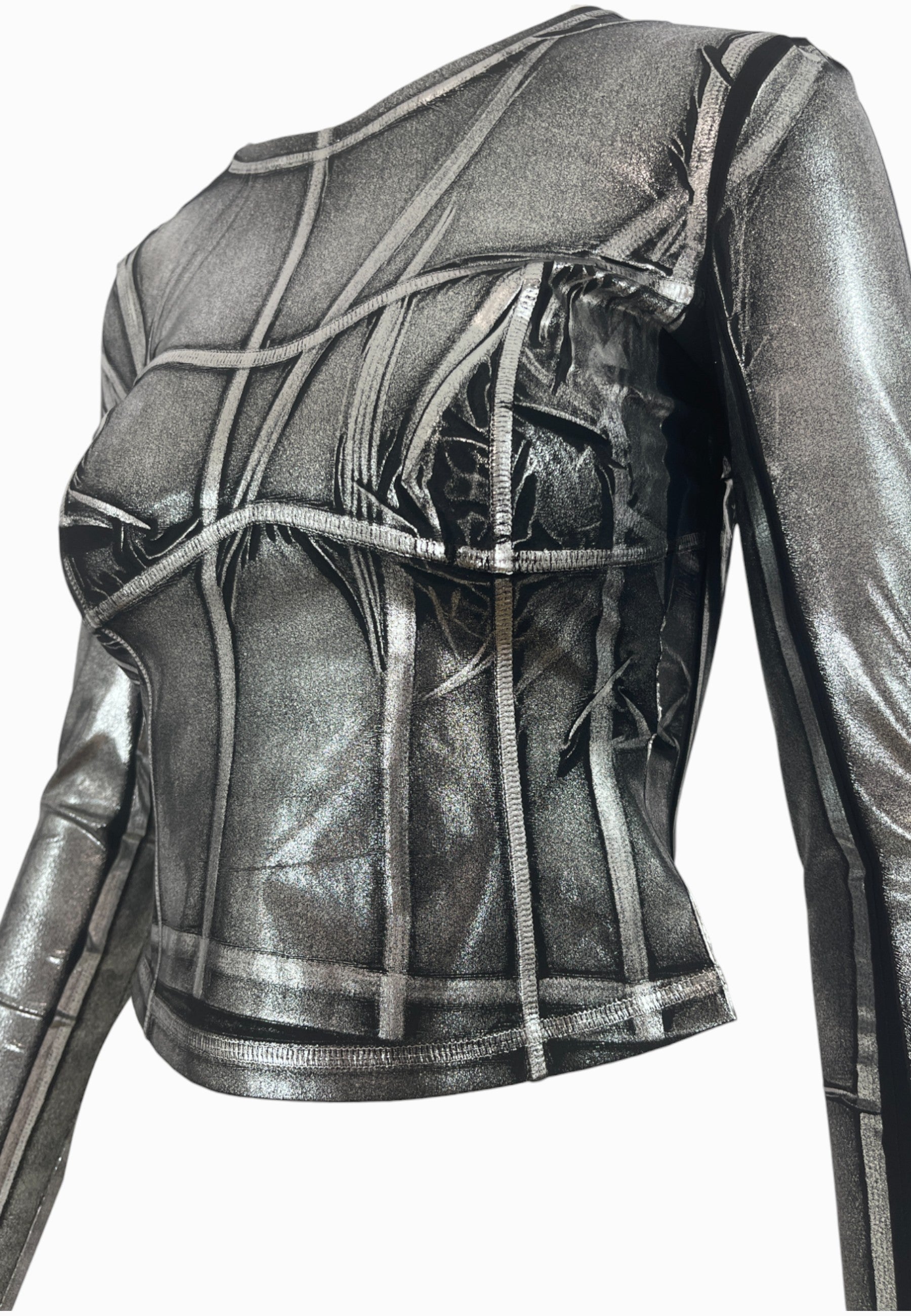 • MAGLIA GIROCOLLO,EFFETTO METALLICO A MANICA LUNGA