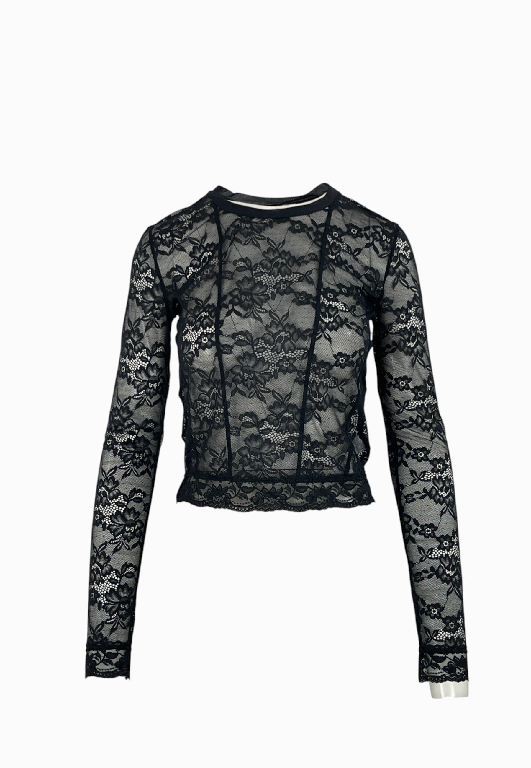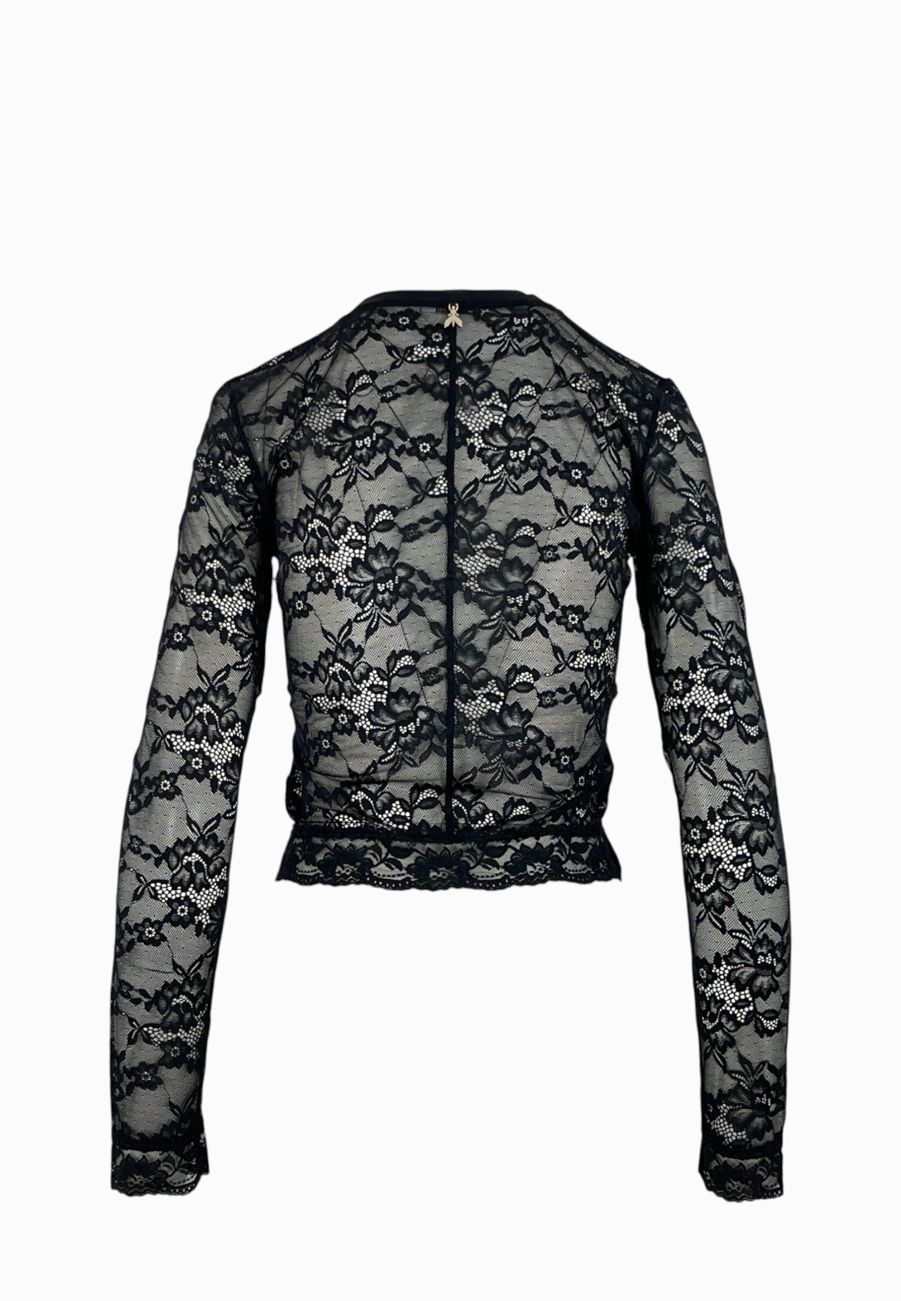 • MAGLIA IN PIZZO ELASTICCIZZATO,GIROCOLLO ,MANICA LUNGA