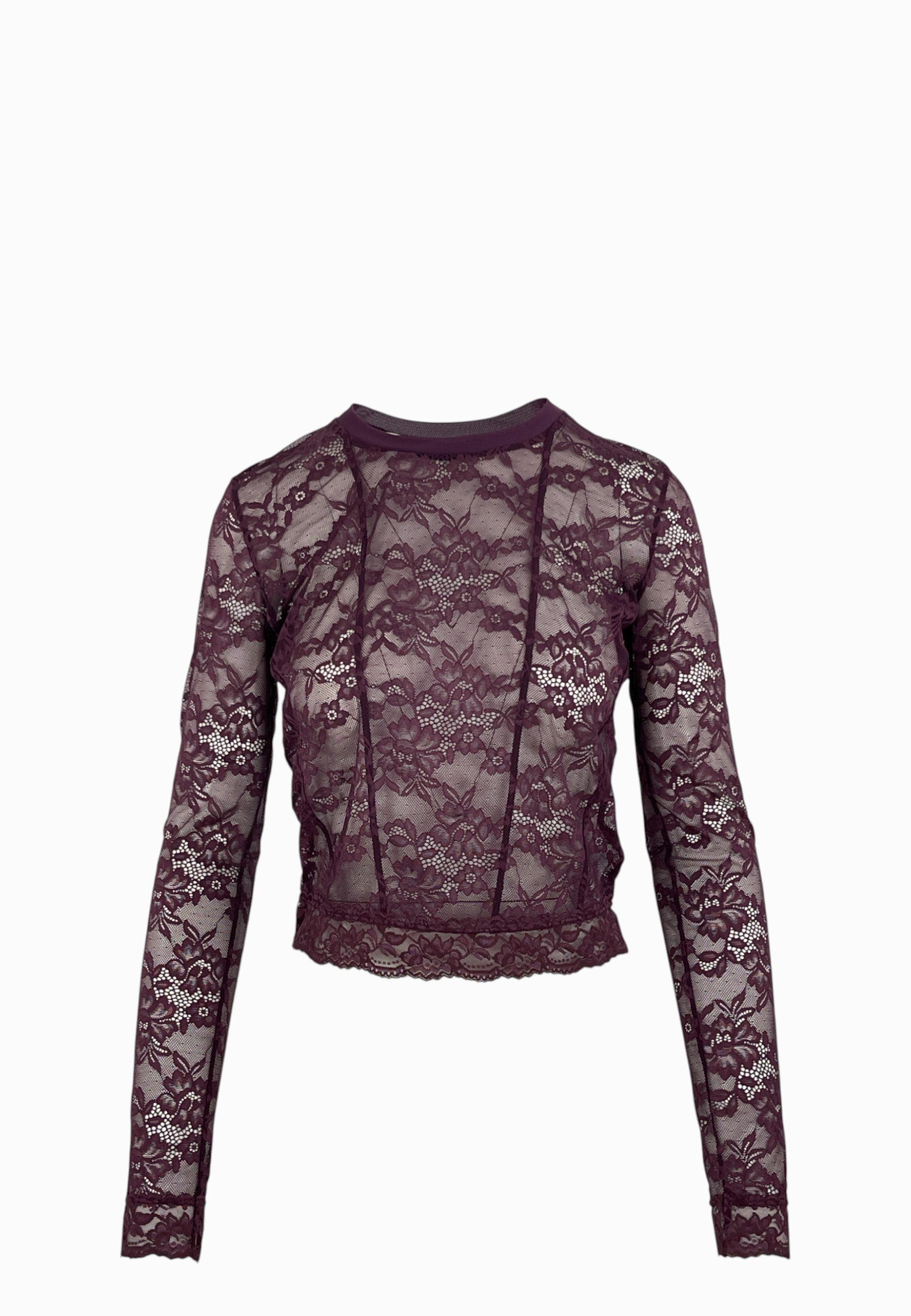 • MAGLIA IN PIZZO ELASTICCIZZATO,GIROCOLLO ,MANICA LUNGA