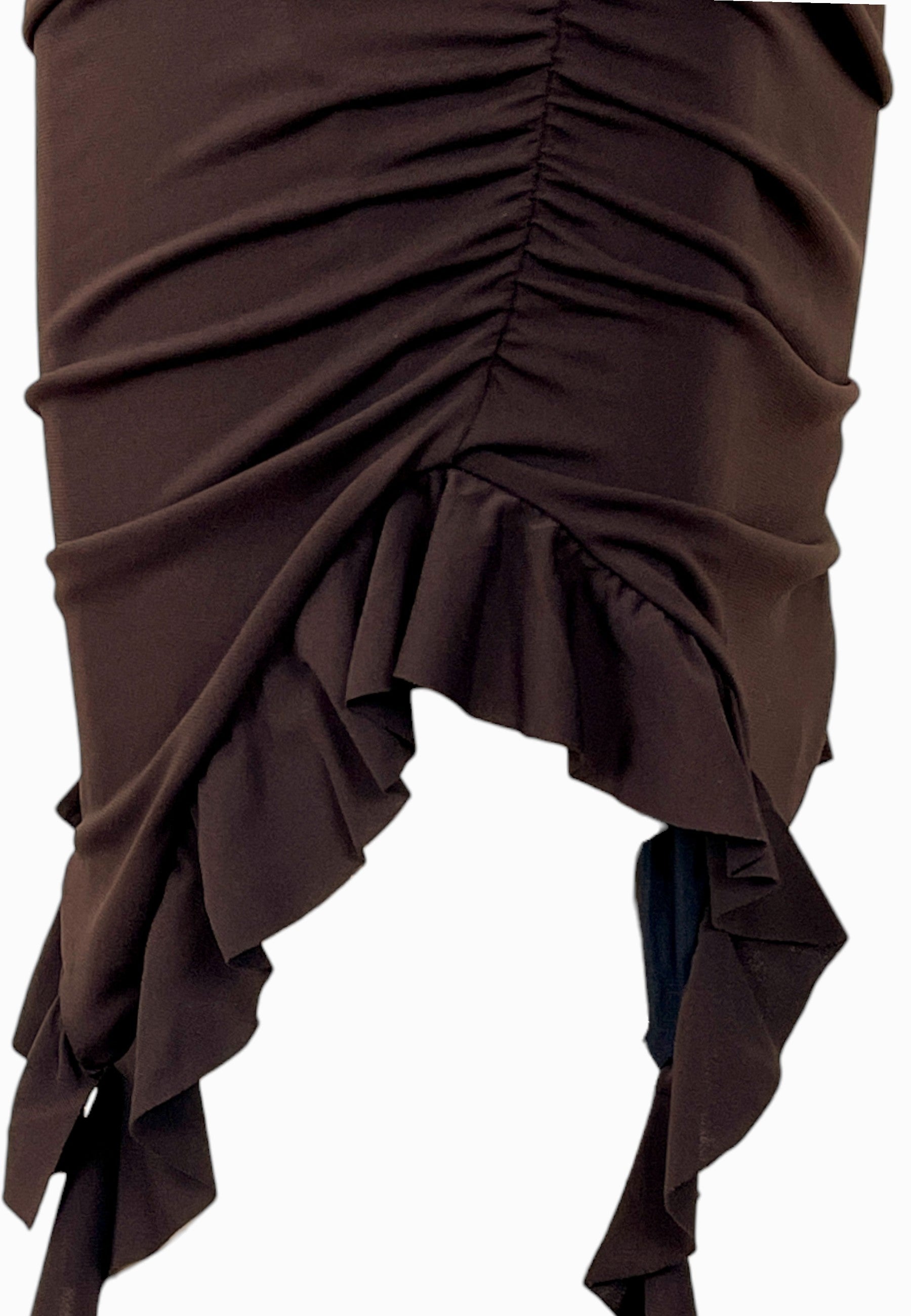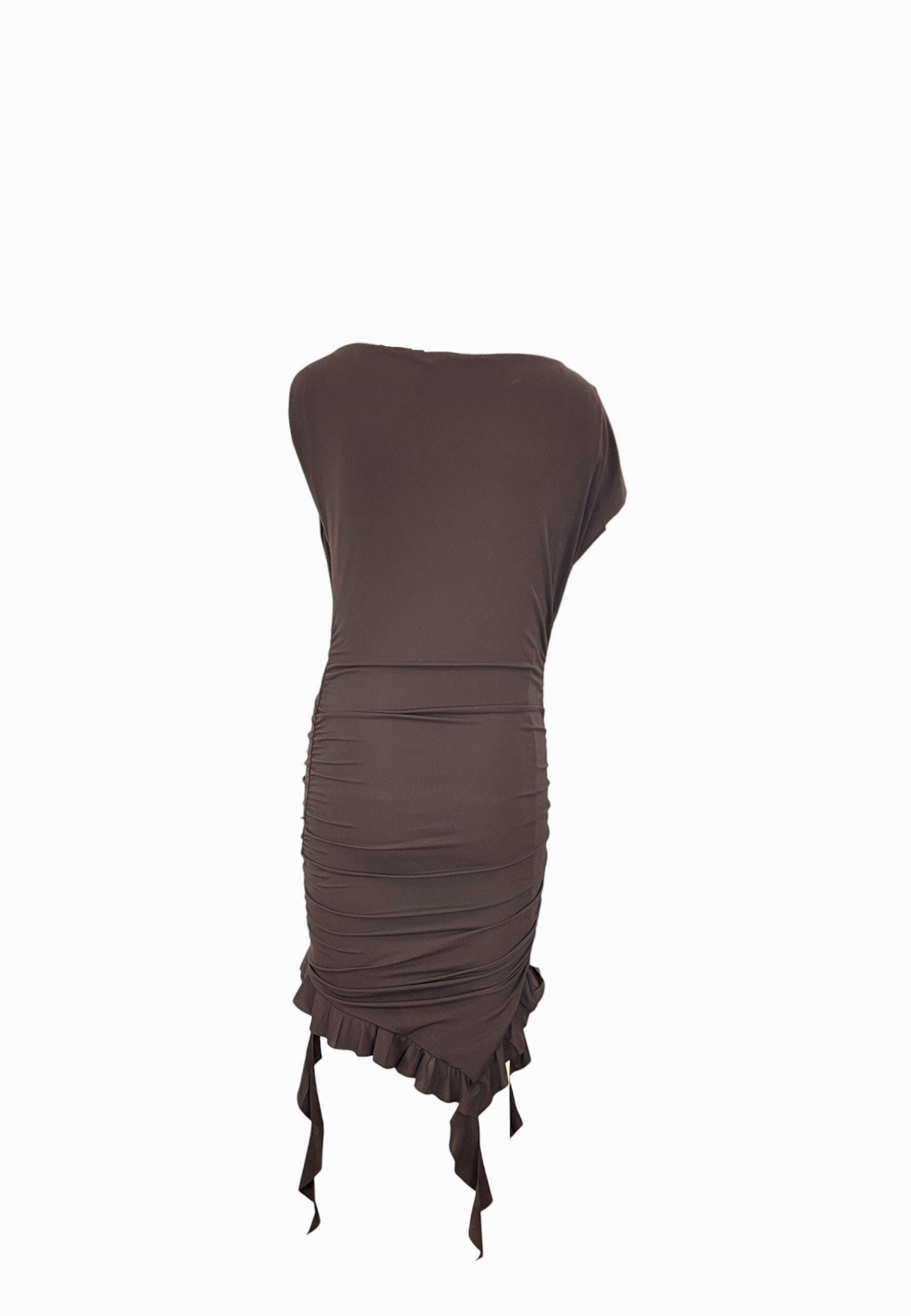 • ABITO TUBINO ARRICCIATO IN VITA E SUI FIANCHI CON ROUCHES SULLA PARTE INFERIORE