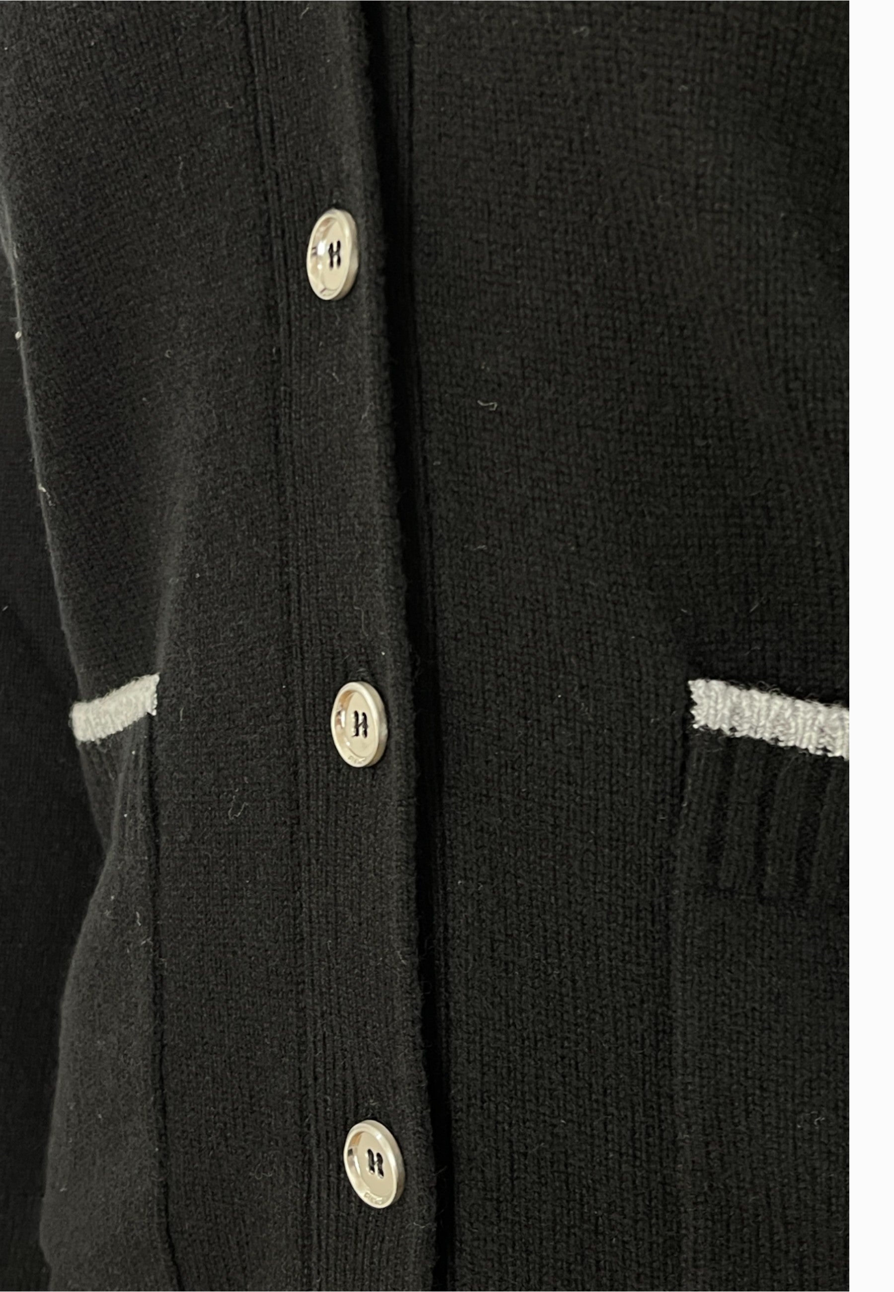• CARDIGAN LUNGO CON BOTTONI,SCOLLO A V, DUE TASCHE FRONTALI BORDATE IN CONSTRASTO