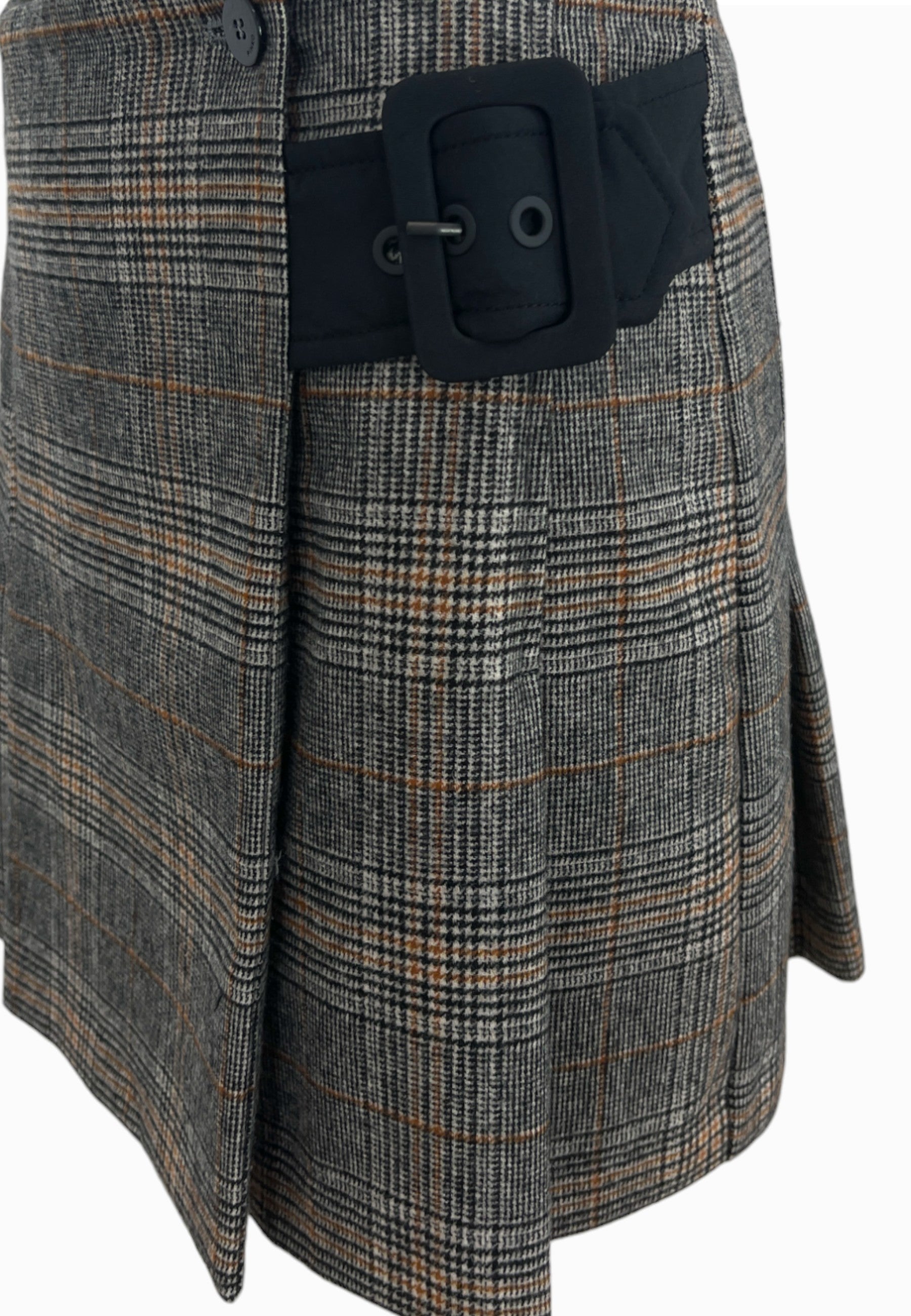 • GONNA A PORTAFOGLIO, STAMPA TARTAN CON PIEGHE,FIBBIA GRANDE IN TESSUTO COLORE NERO