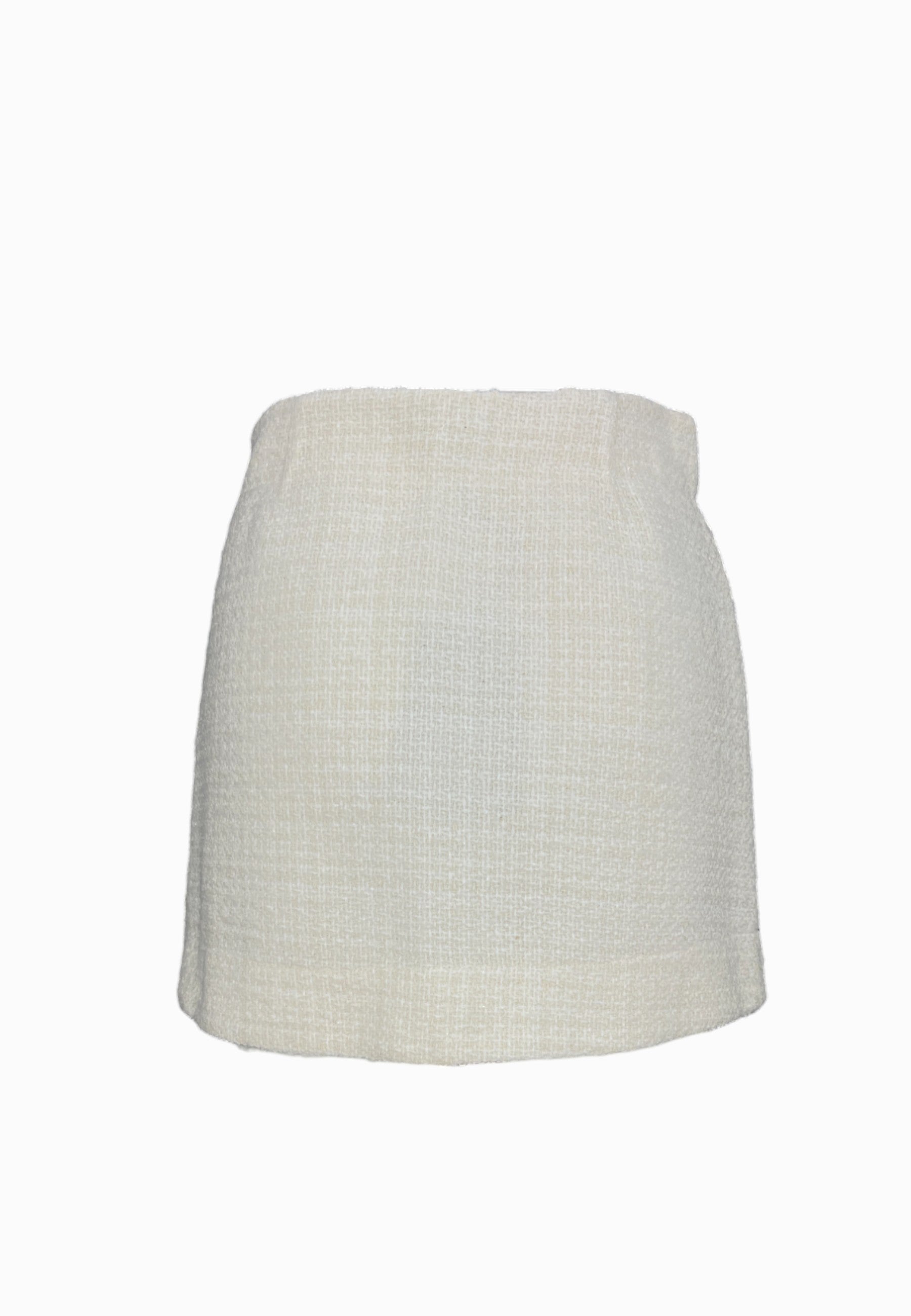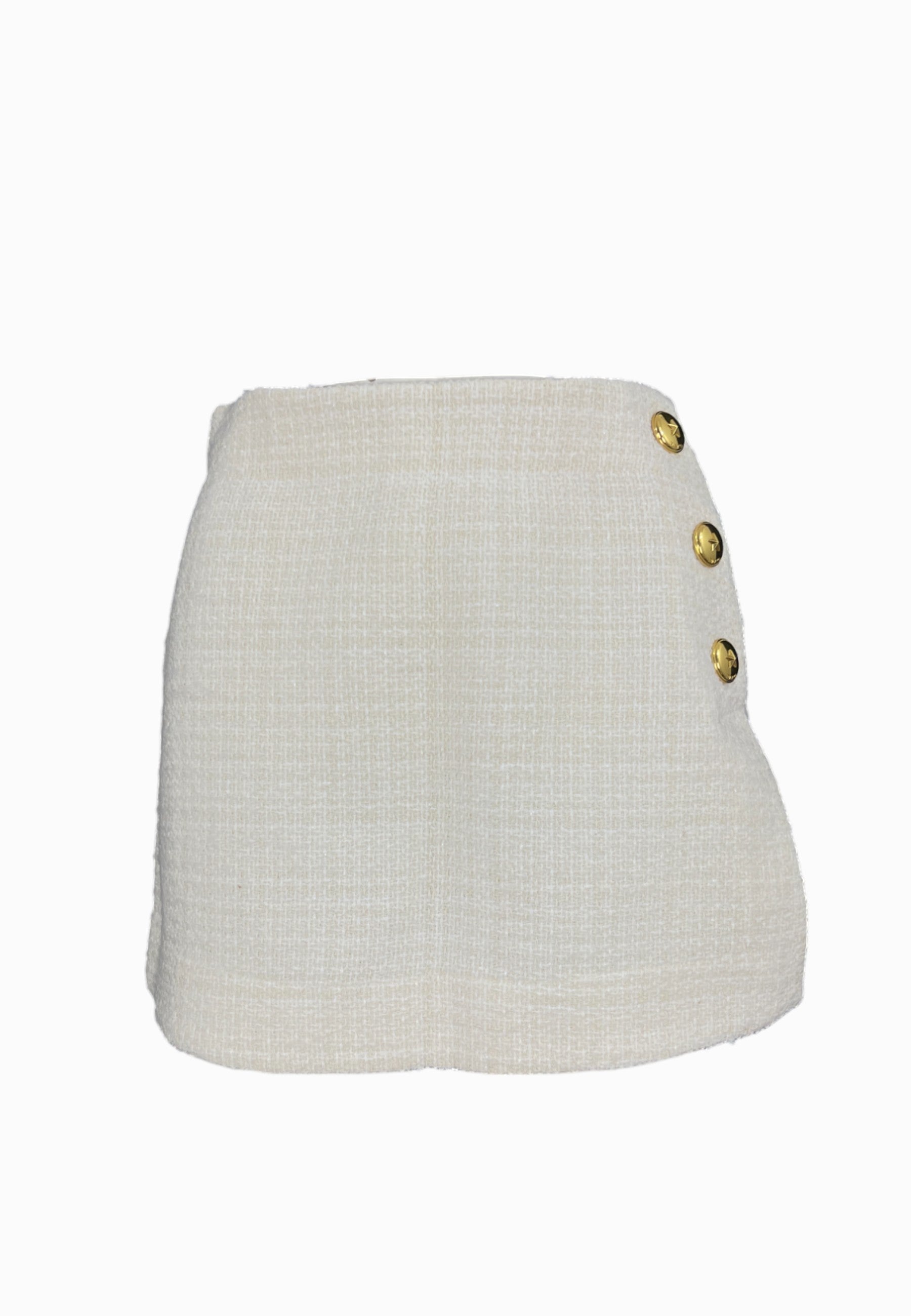• MINIGONNA IN TWEED, CON APERTURA SUL FIANCO,BOTTONI IN COSTRASTO COLORE ORO