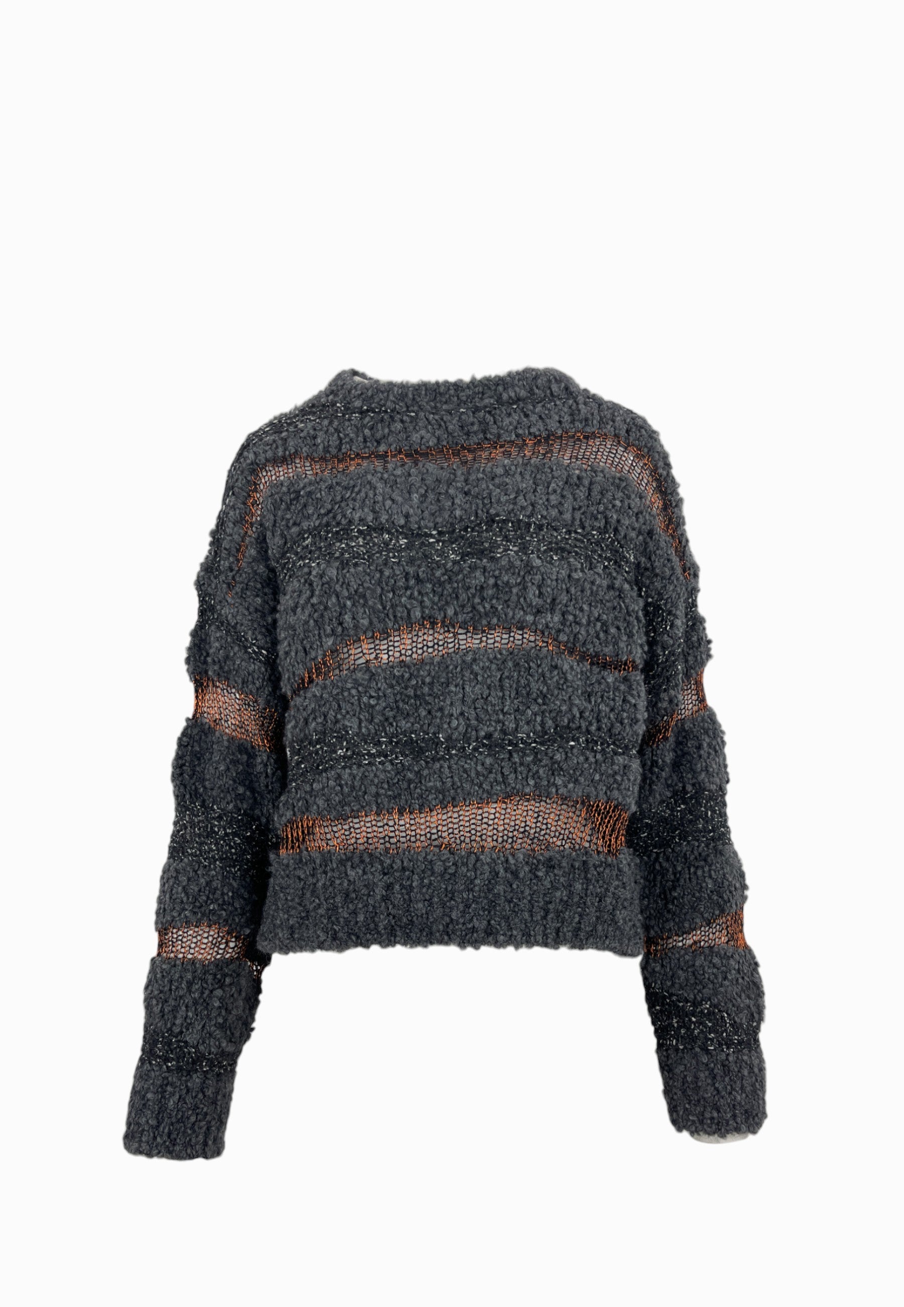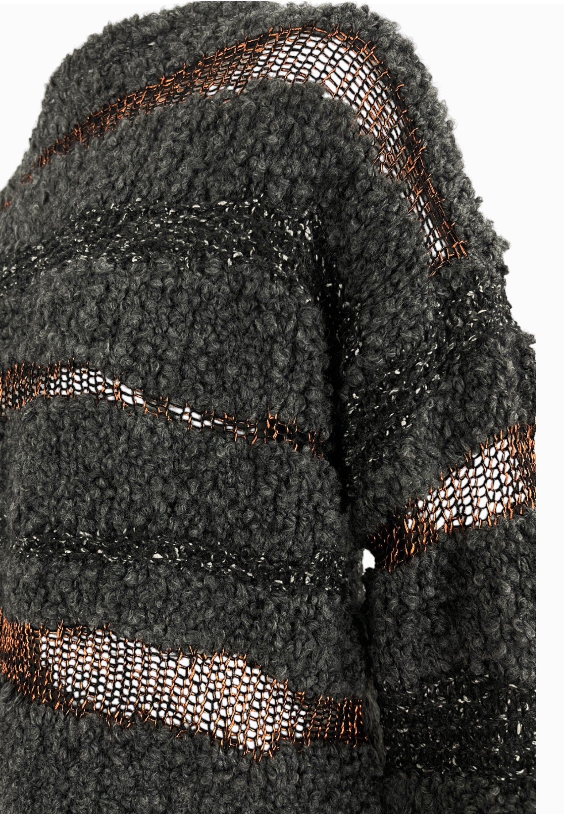 • MAGLIA GIROCOLLO ,EFFETTO JACQUARD CON INTRECCI IN COSTRASTO COLORE RUGGINE