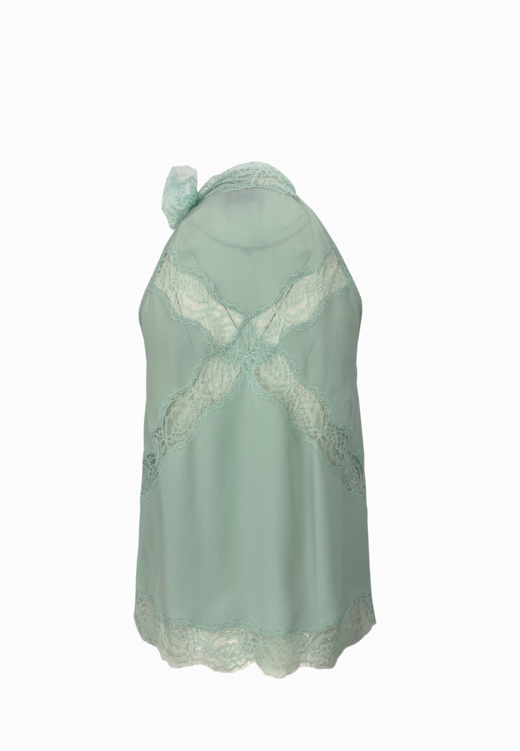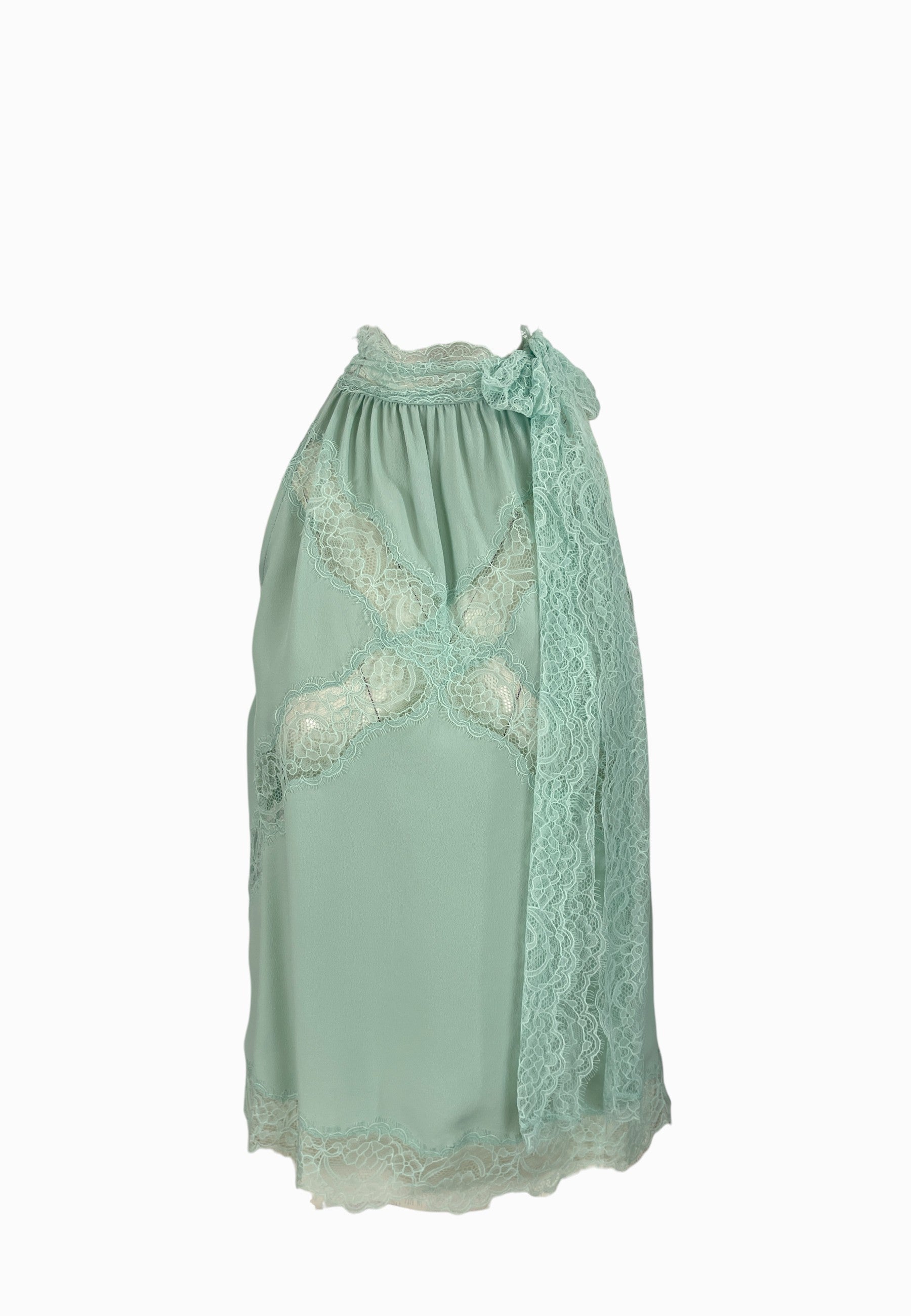 • TOP IN SETA E PIZZO CON ALLACCIATURA SUL COLLO