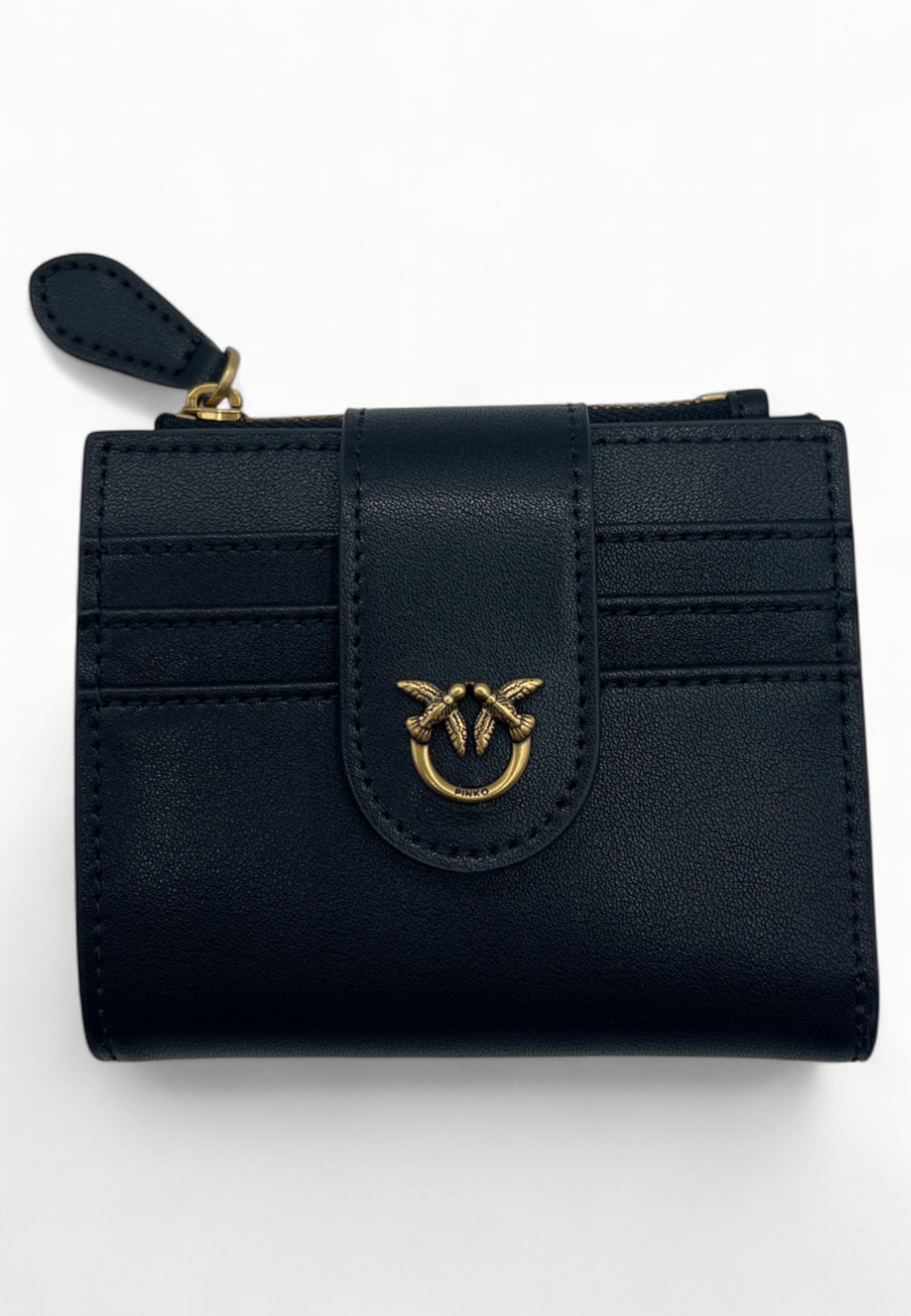 • PORTACARTE CON PICCOLO SCOMPARTIMENTO CON CERNIERA COLORE ORO,LOGO ICONICO SULLA FIBBIA DI CHIUSURA