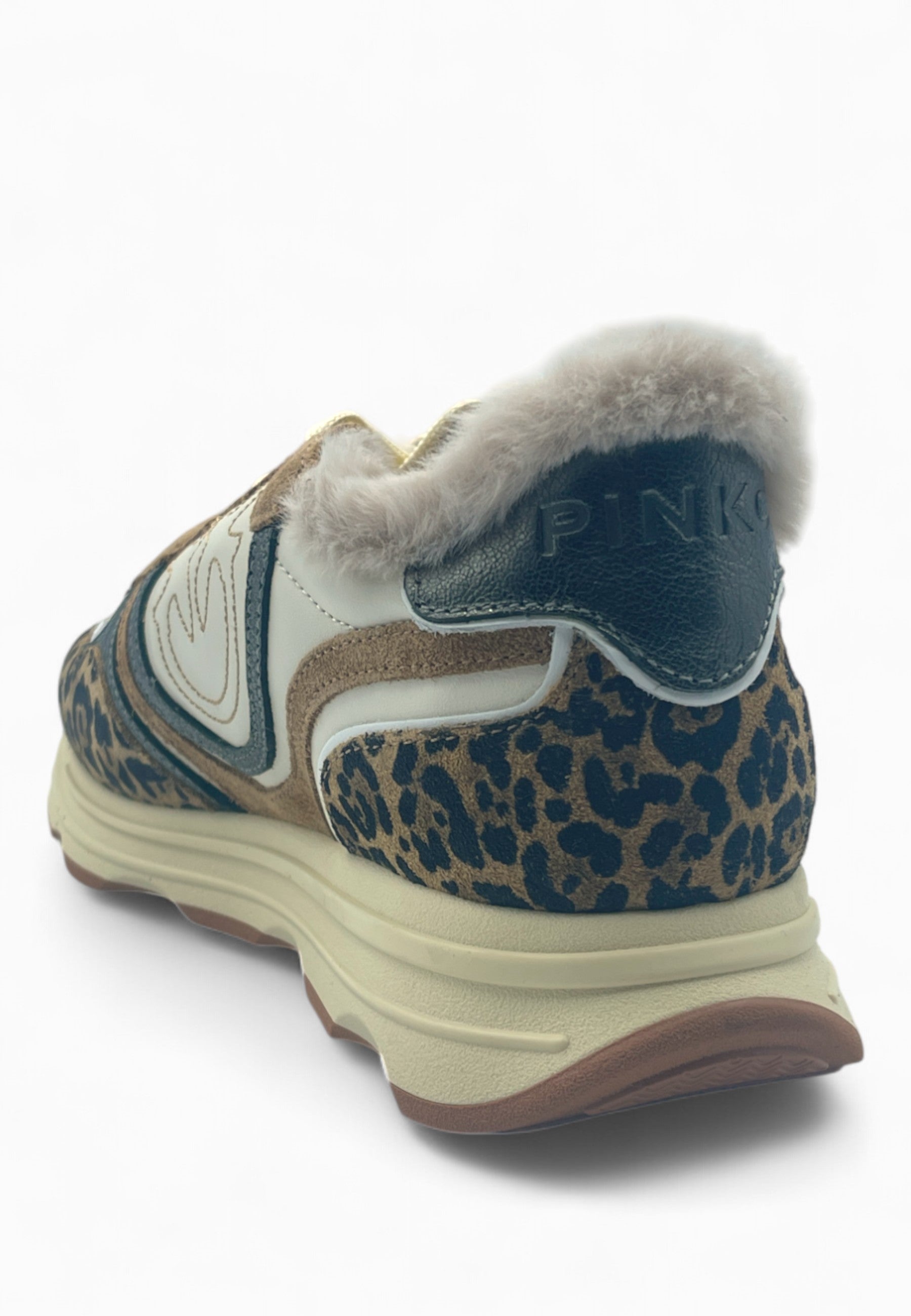 • SNEAKERS CON FANTASIA ANIMALIER,IMBATTITA CON ECOPELLICCIA, PARTI IN TESSUTO E LOGO ICONICO SUL LATO