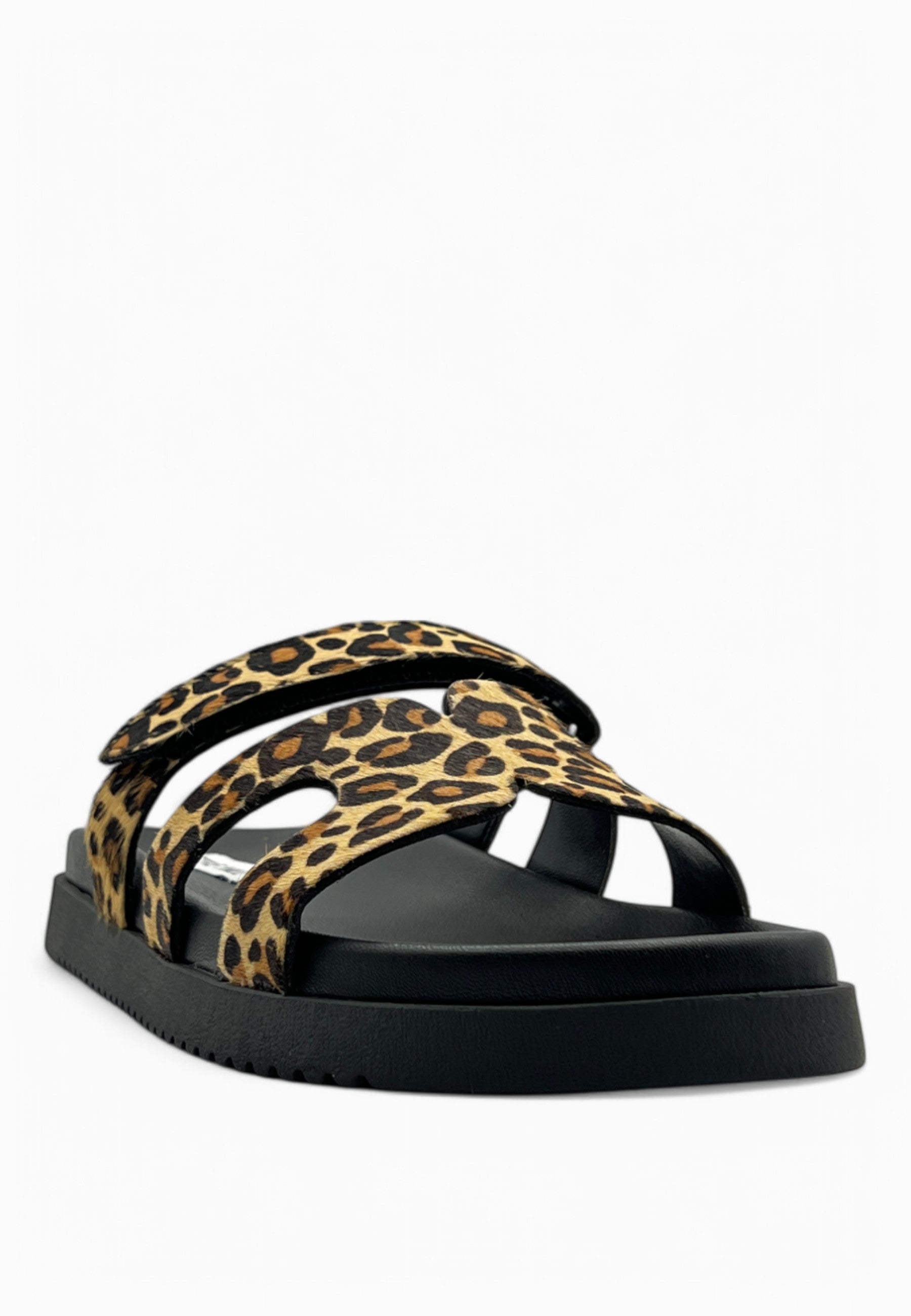 • CIABATTA, TOMAIA IN PELLE CON STAMPA ANIMALE, ALLACCIATURA CON STRAP, SUOLA IN GOMMA