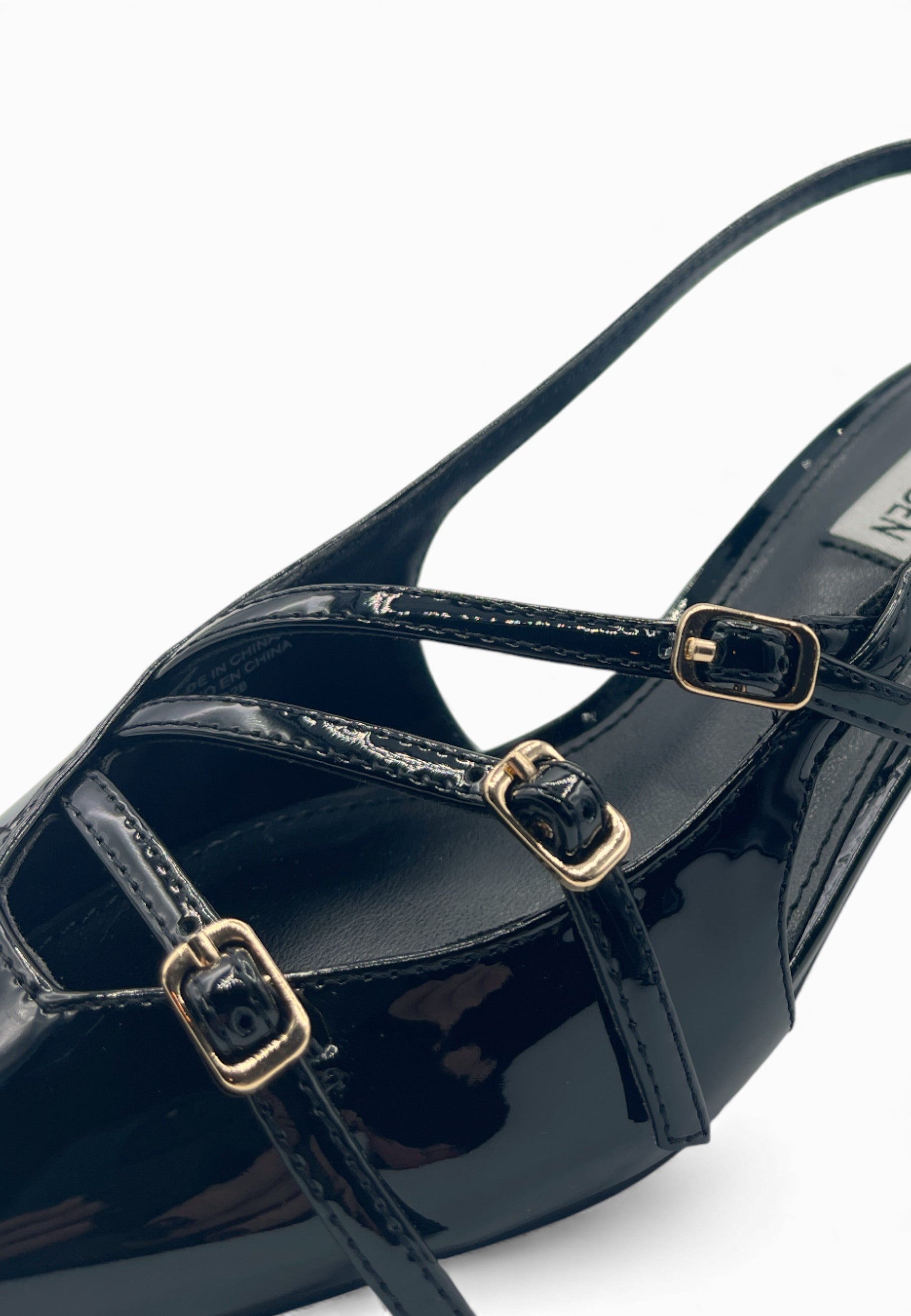 • SLINGBACK TACCO MEDIO ROCCHETTO CON TRE FIBBIE COLORE ORO