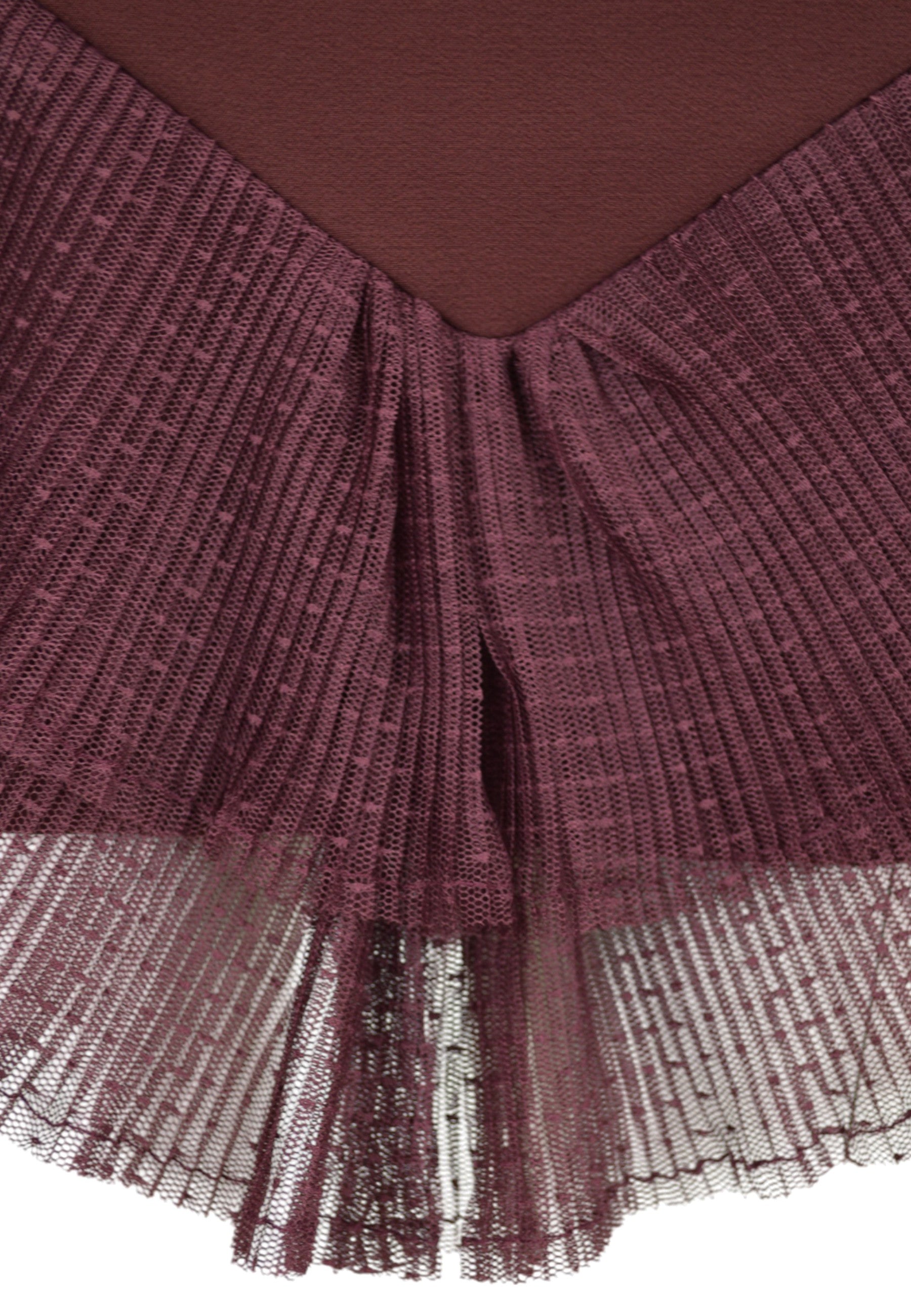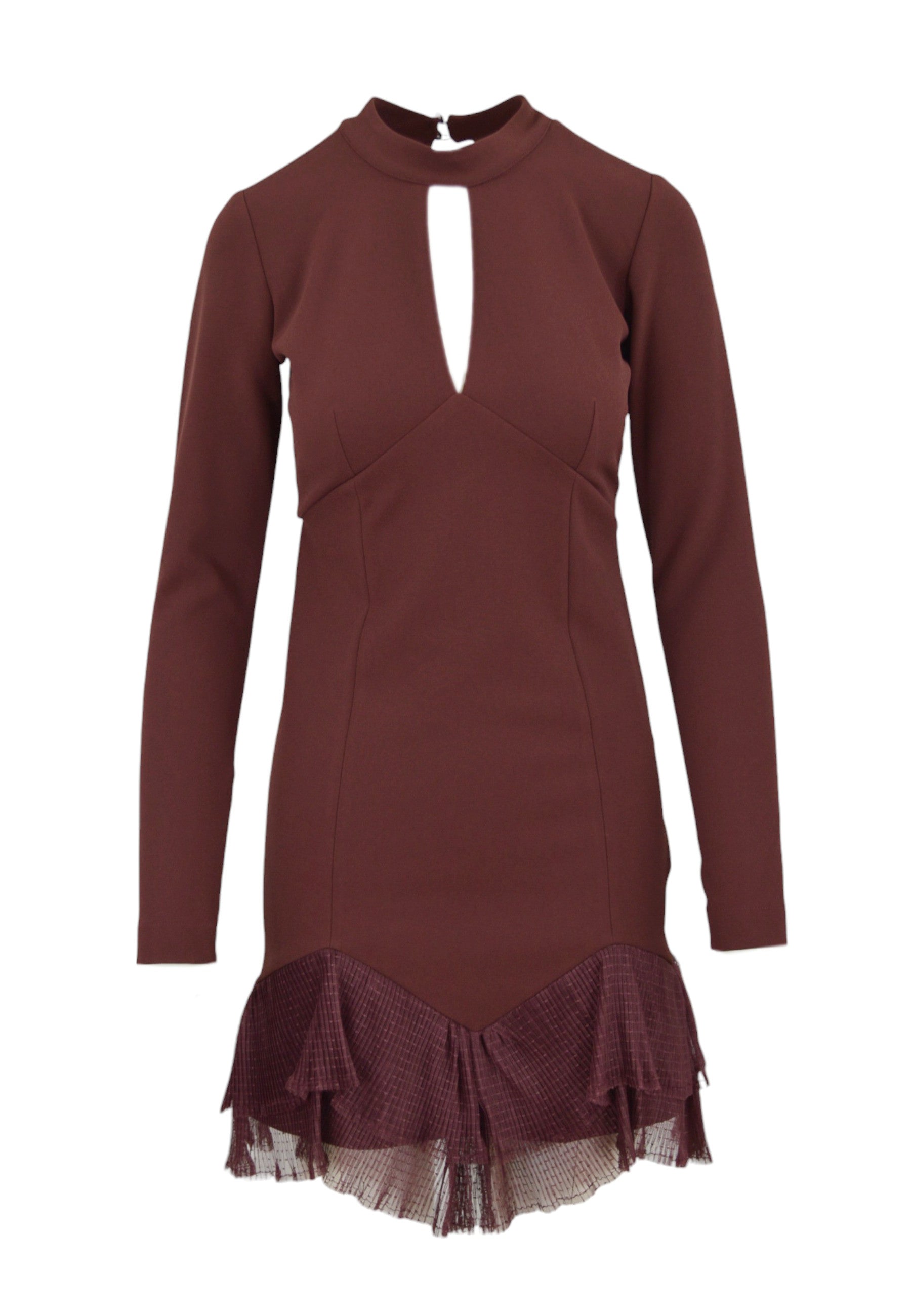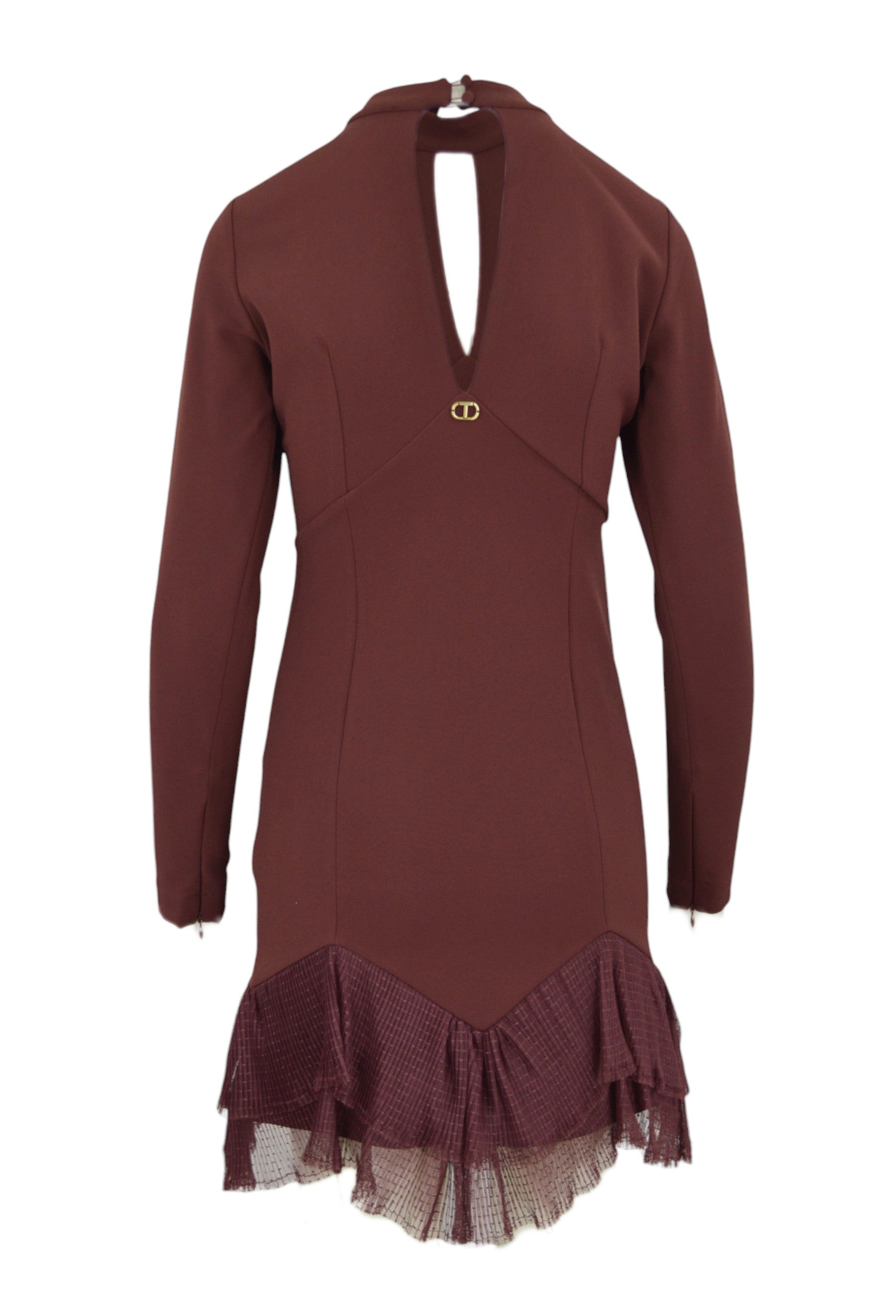 • ABITO CORTO, MANICHE LUNGHE, GIROCOLLO, SPACCO FRONTALE, PENDAGLIO LOGATO SUL RETRO, CHIUSURA A ZIP LATERALE, DETTAGLI IN PIZZO SUL FONDO